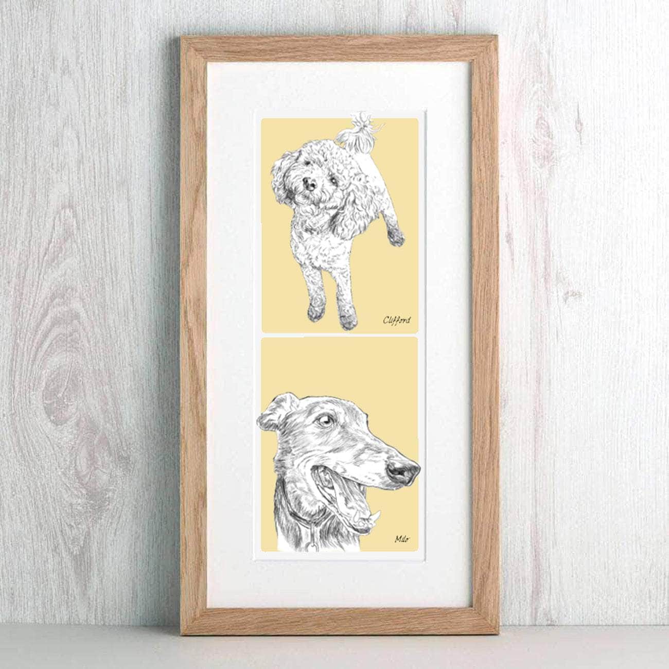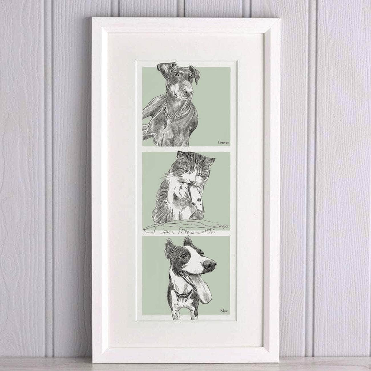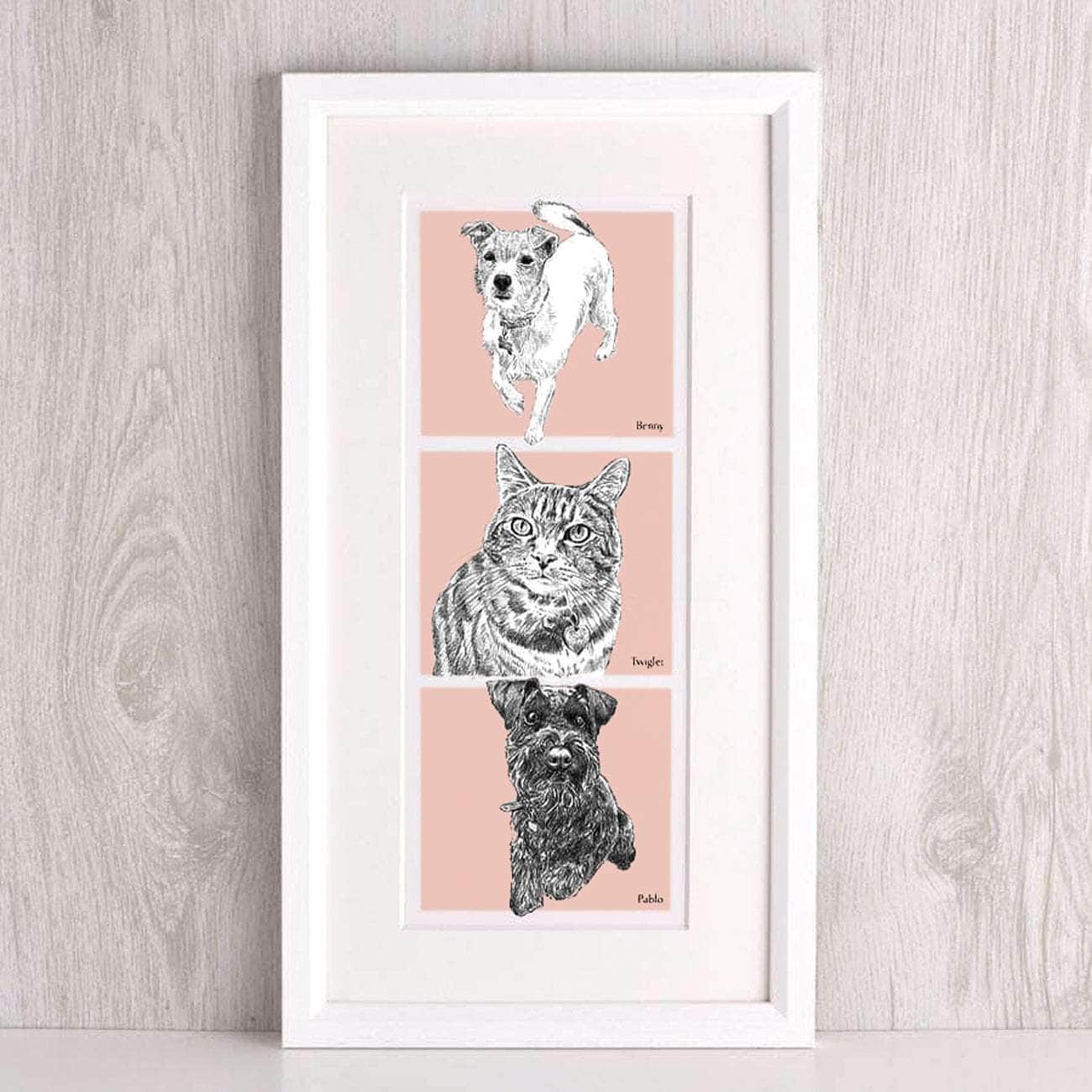 A unique illustration of your pets, hand-drawn by artists in North Devon - a perfect gift for pet lovers.