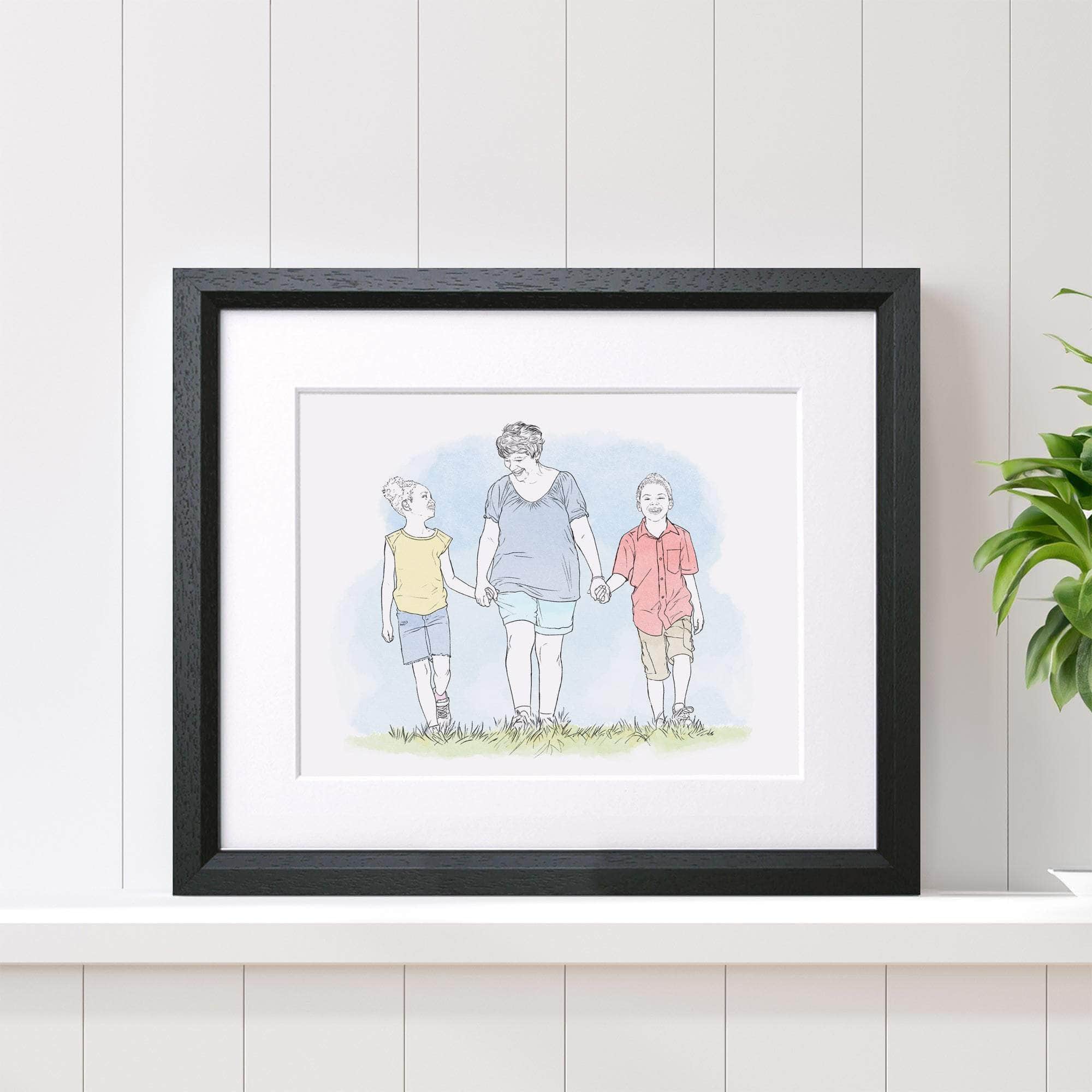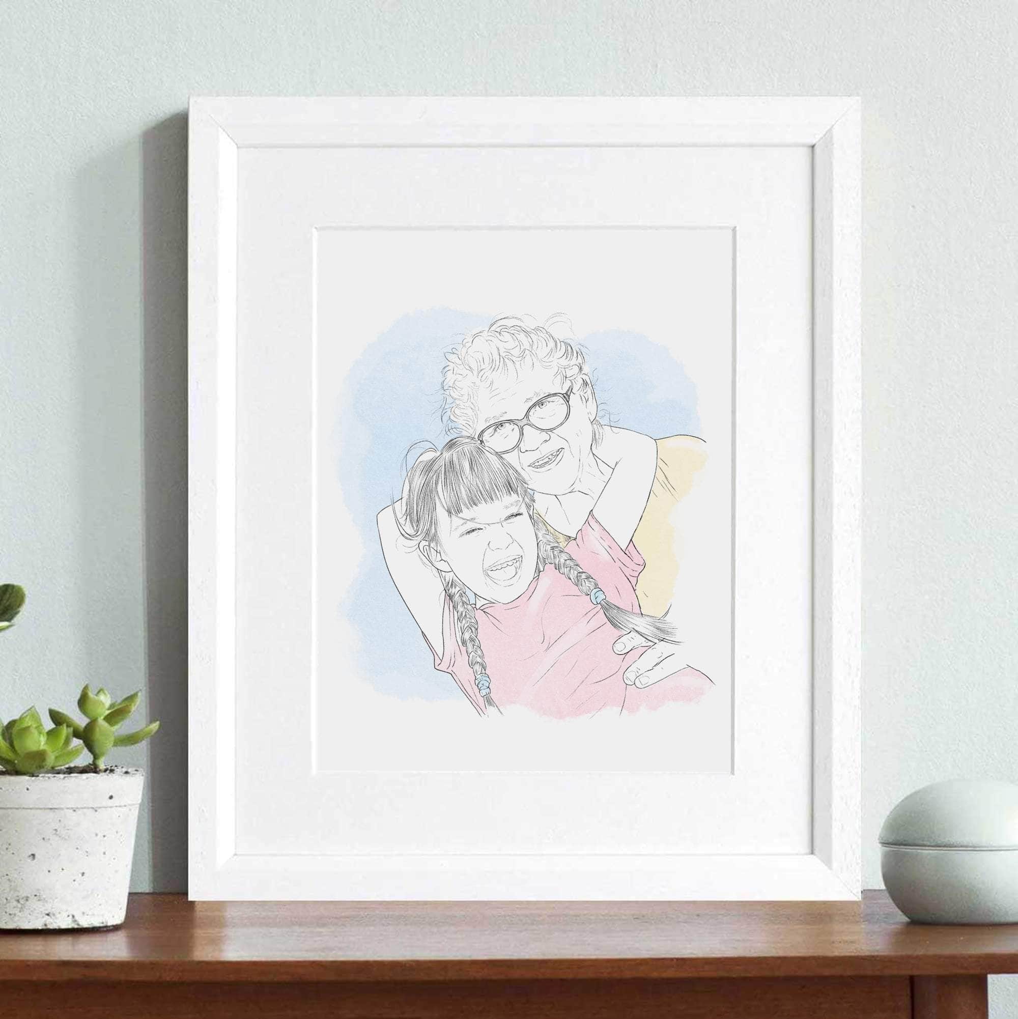 A personalised watercolour sketch based on a favourite photograph, hand-drawn by artists working in Devon. A special keepsake celebrating those moments between Grandma and child.
