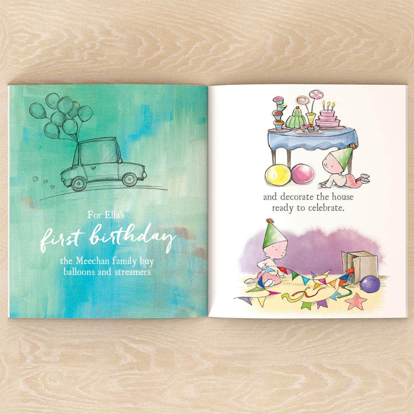 A gorgeous keepsake to celebrate your baby's first birthday - a personalised story book with a character based on your child.