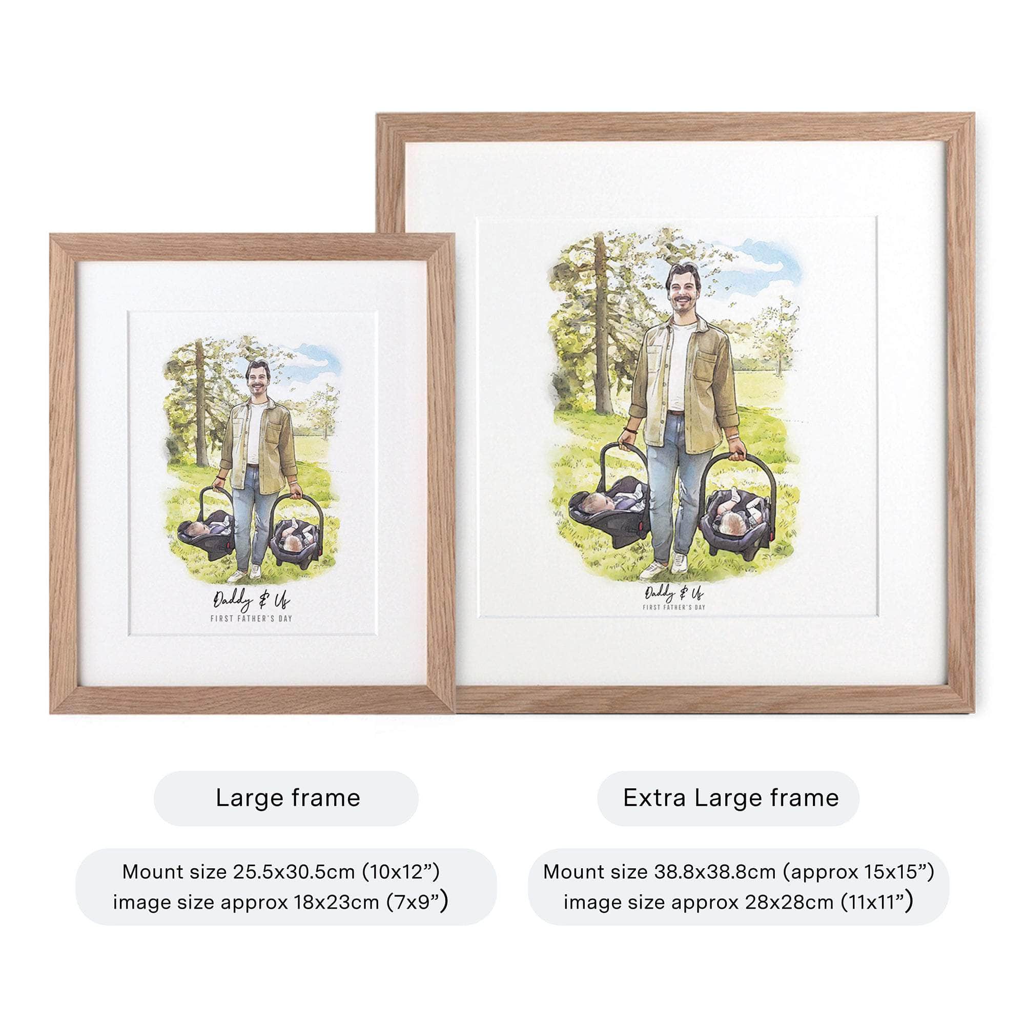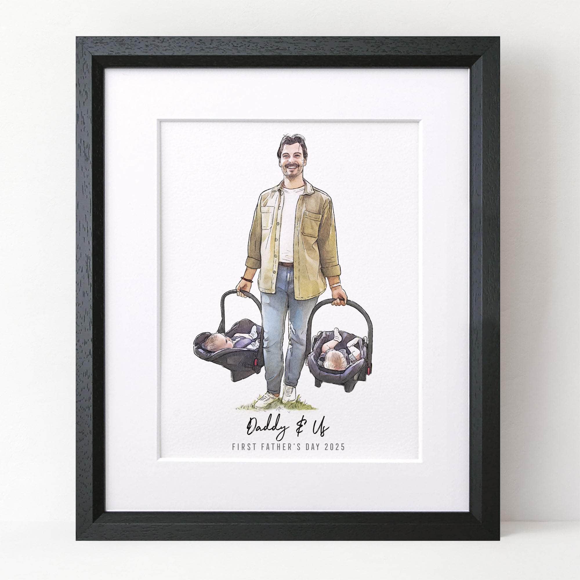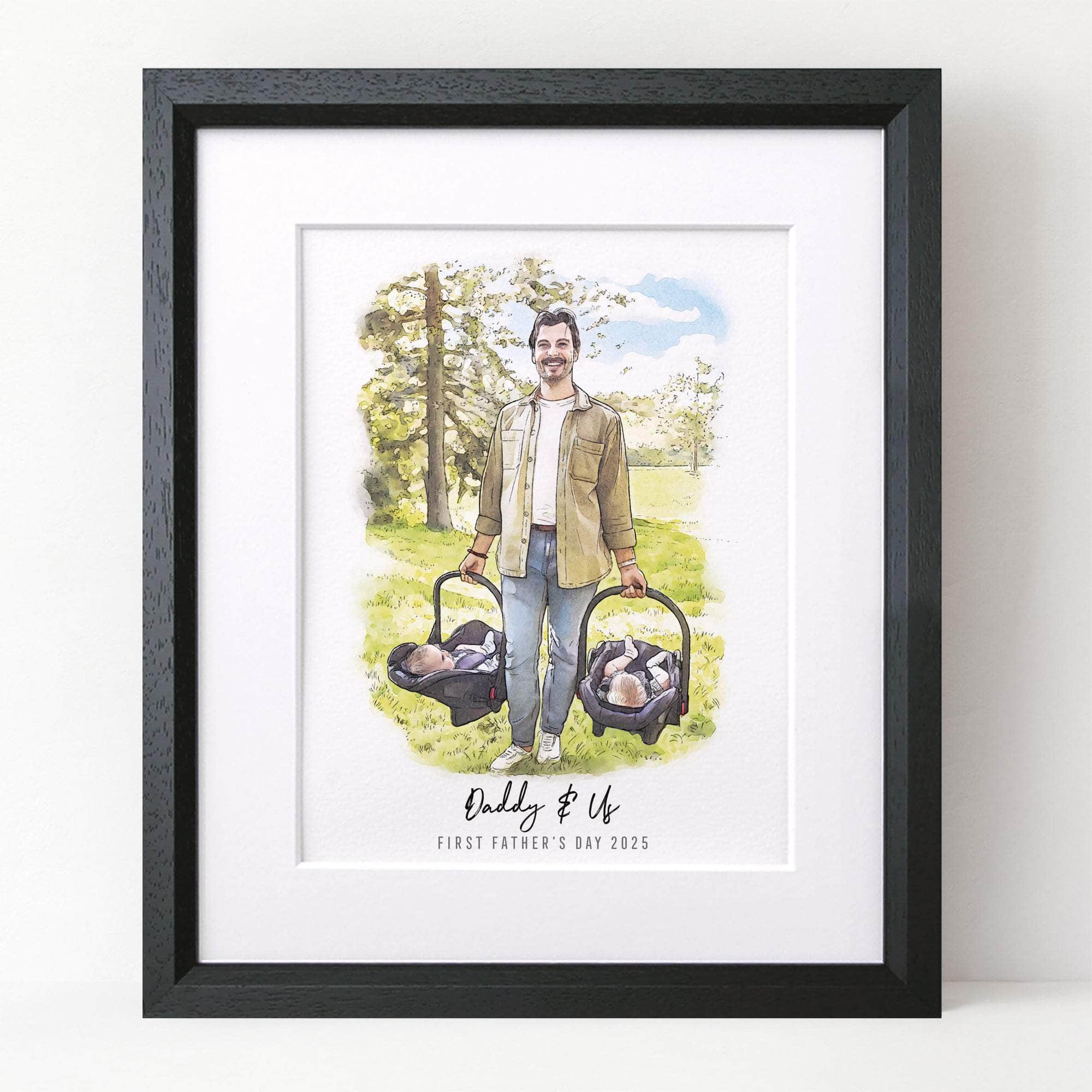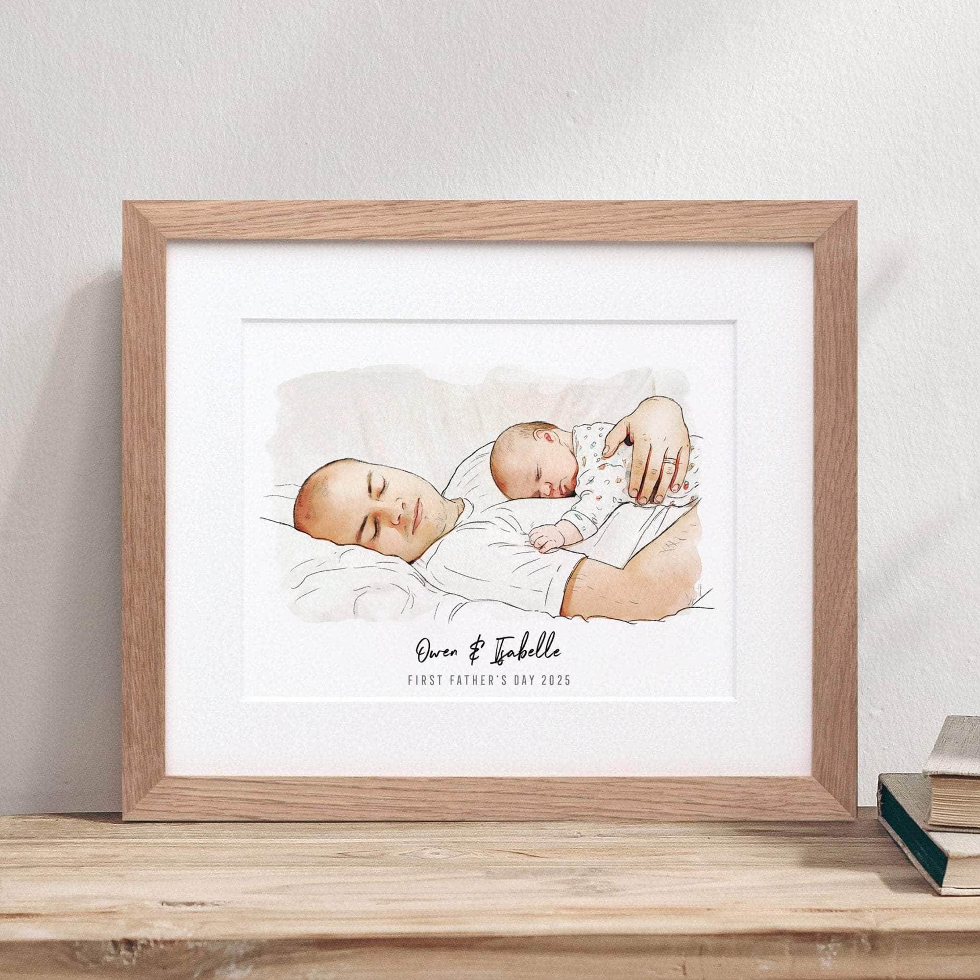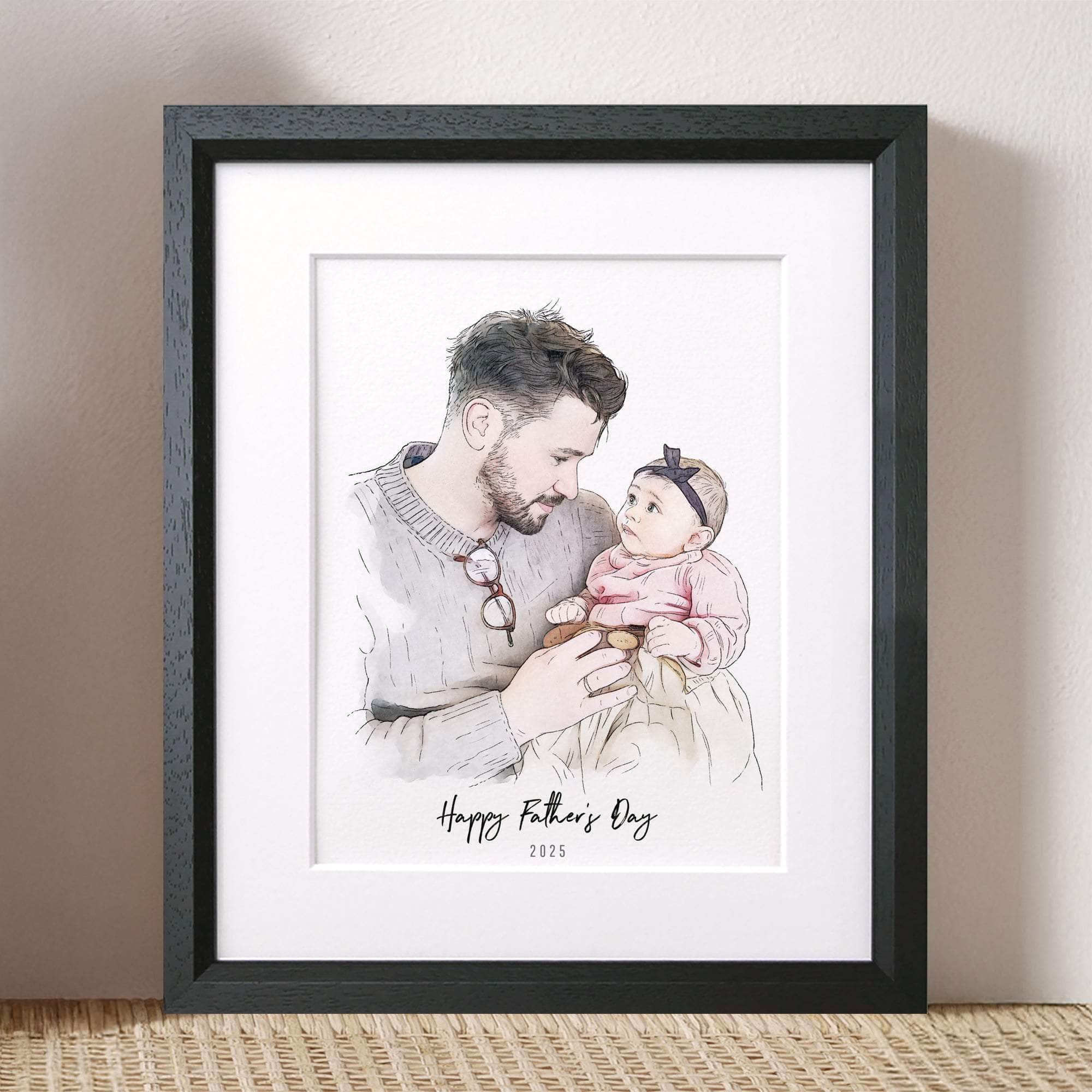A hand-drawn watercolour illustration of Daddy and child - a gorgeous birthday gift for a new Dad or for his first Father's Day.