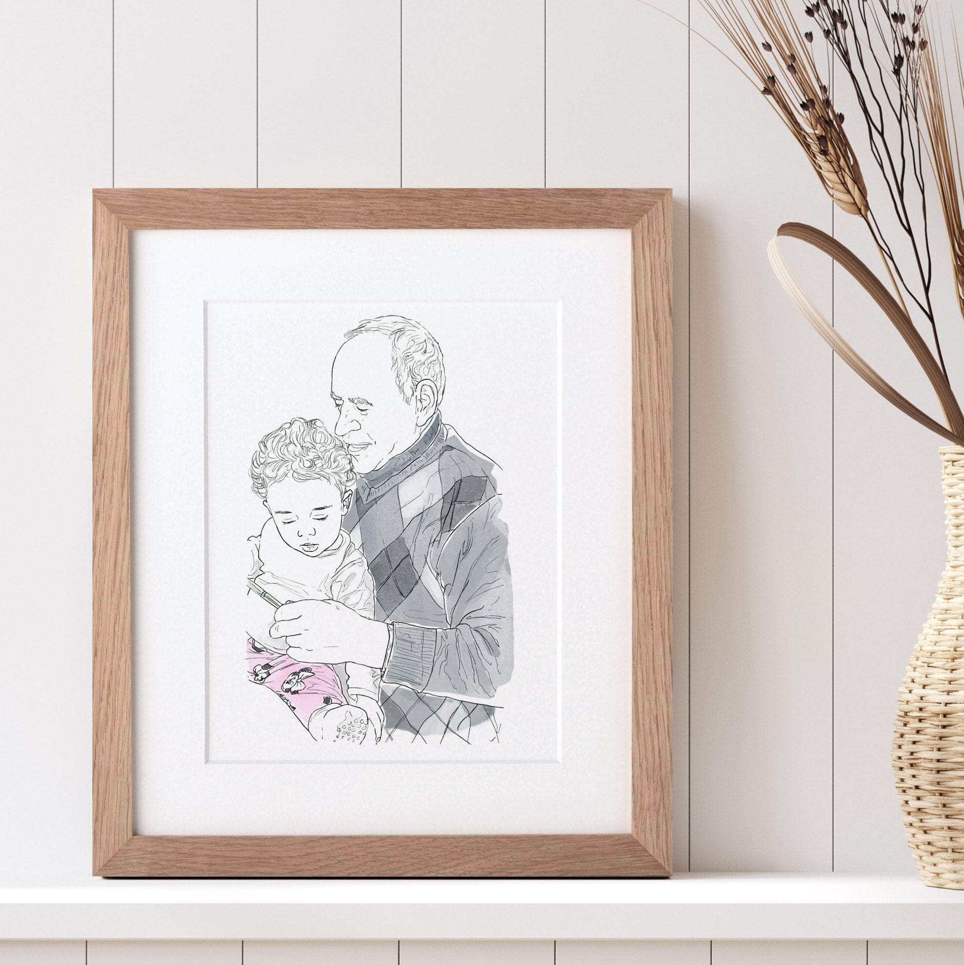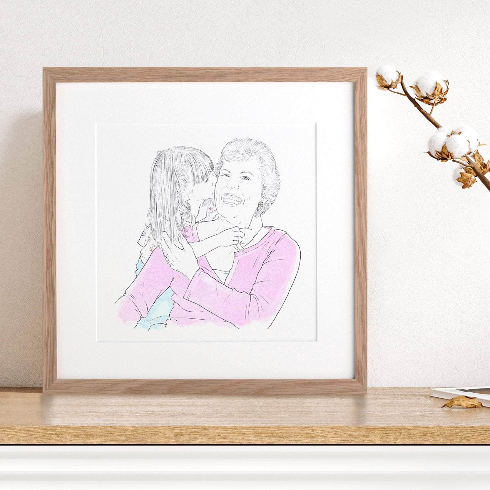 This expertly crafted watercolour sketch is created from a beloved photograph by our talented team of artists. It's a unique keepsake perfect for grandparents.
