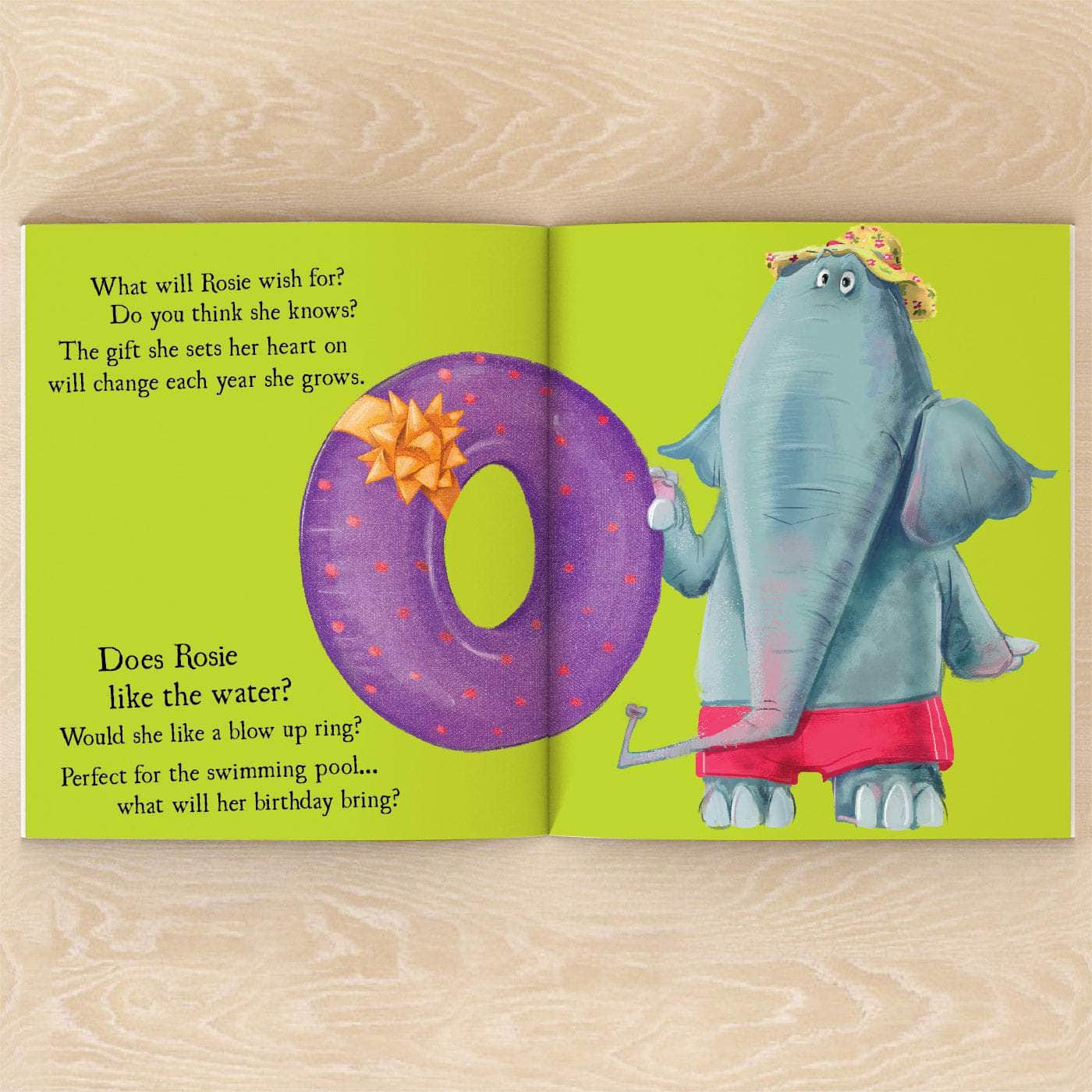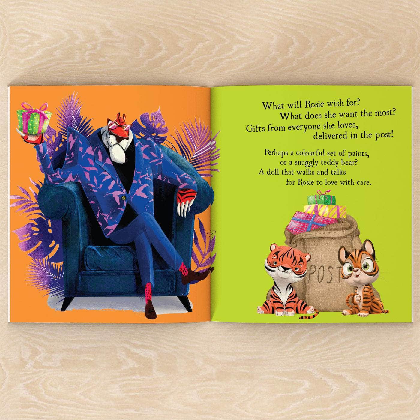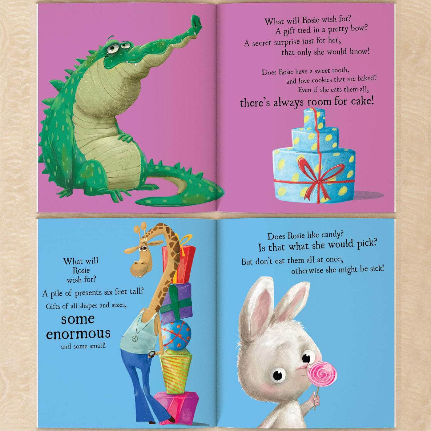 Cookies for crocodile, a pile of presents six feet tall for the giraffe.... a new rubber ring for an elephant who loves swimming.