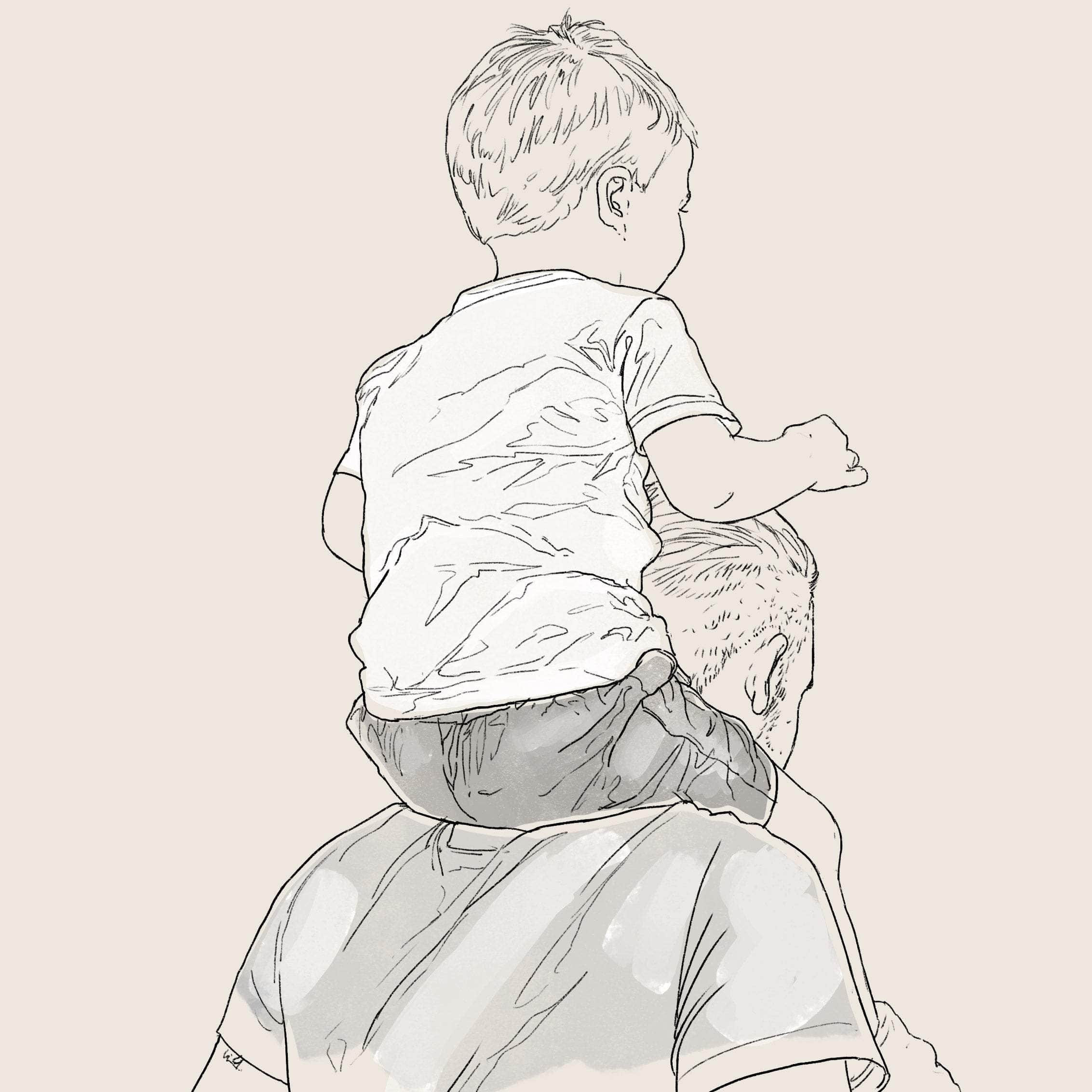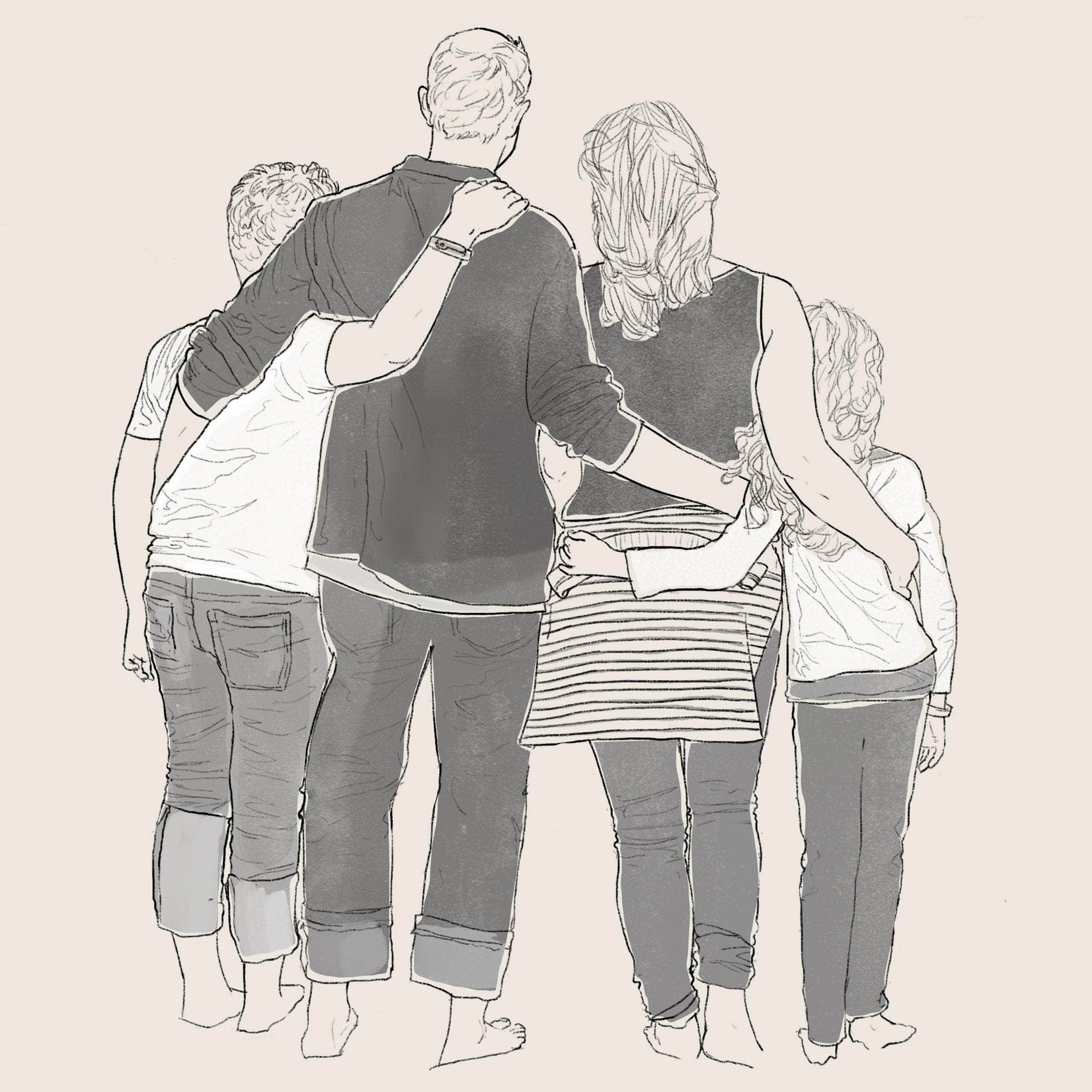 This is a sketch rather than a detailed drawing - what we draw will depend on the quality of your photo and what we can see. The poses that work best are natural looking moments, rather than smiling directly at the viewer - so looking down, to the side or from behind.