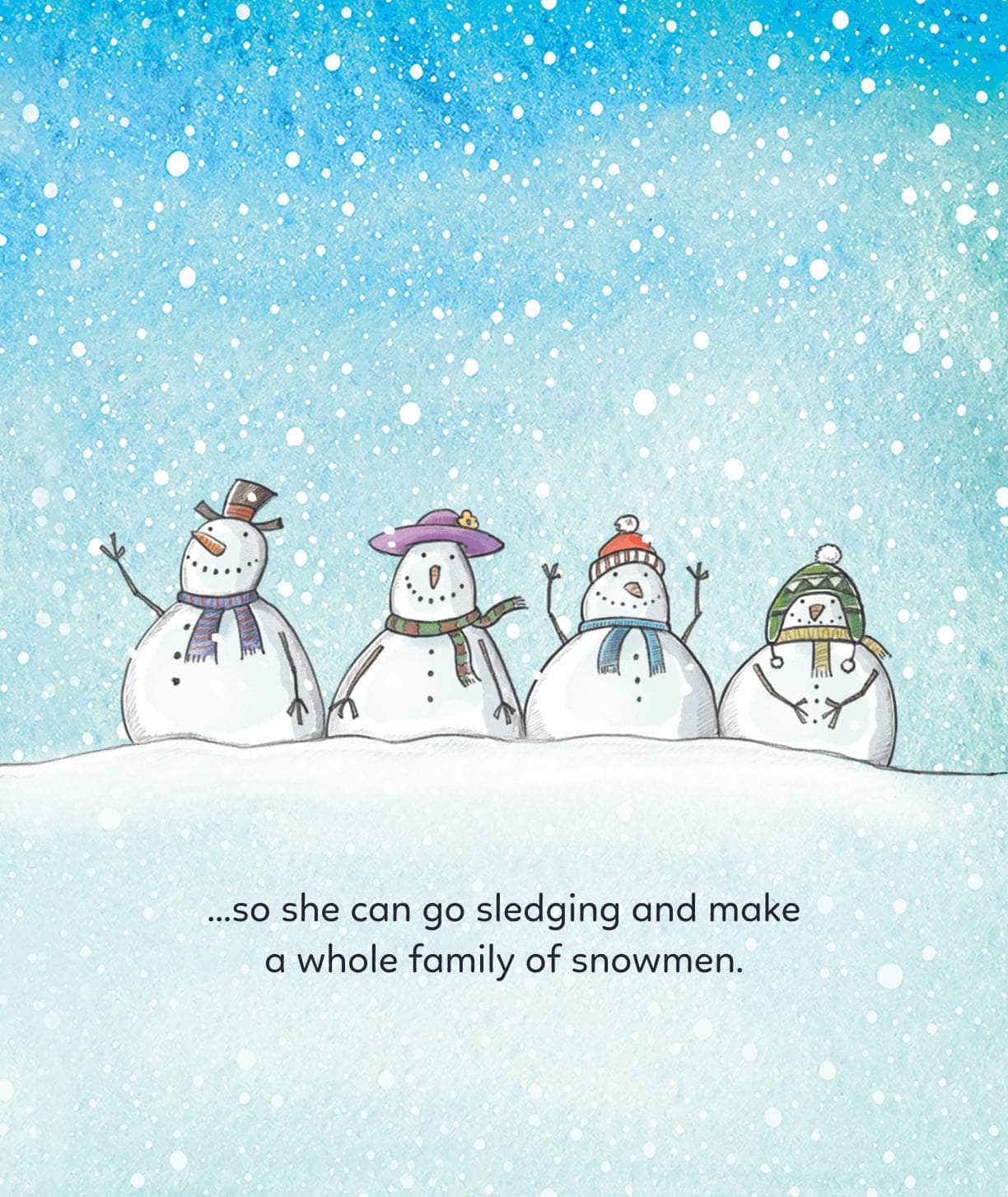 (Child’s name) hopes it will snow… so he/she can go sledging and make a whole family of snowmen.