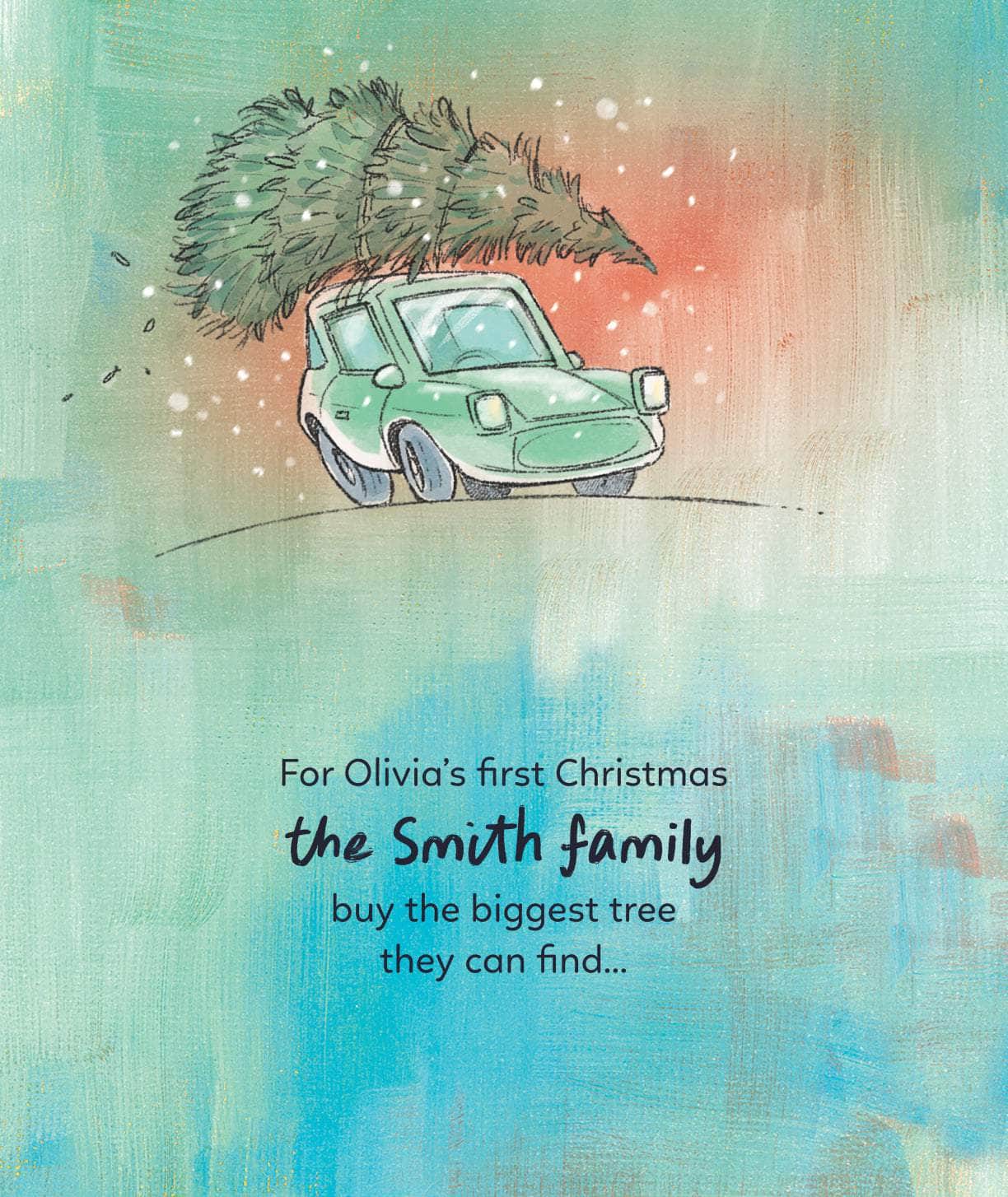 Capture the excitement of Baby's first ever Christmas with loveable illustrations and a heartwarming story. On the back page we print a Christmas message with an illustration of a gift tag printed with the names of who the book is from.