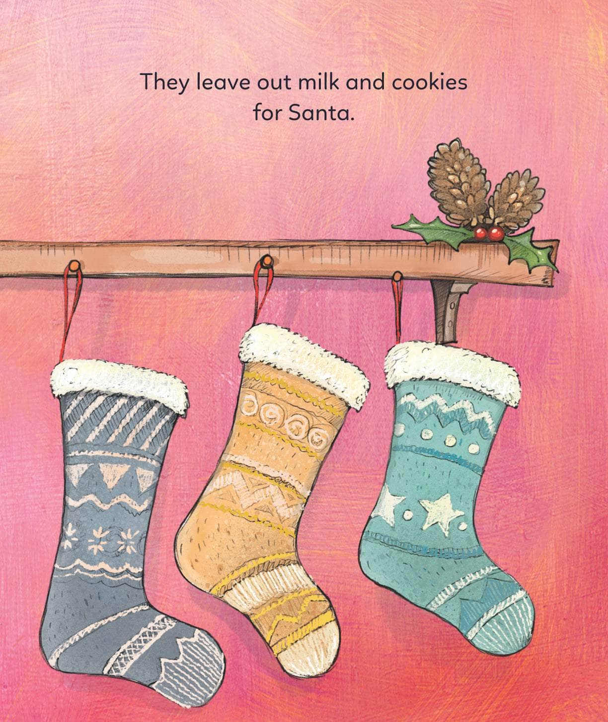 They hang up (name’s) stocking on Christmas Eve ready for Santa to fill with presents.