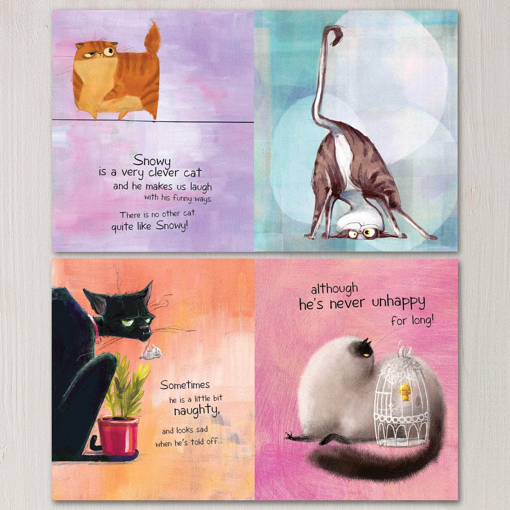 Discover your cat's adventures in our children's story book. Although we can't paint your actual cat, we've included lots of wonderful breeds and humorous characters for cat lovers everywhere.