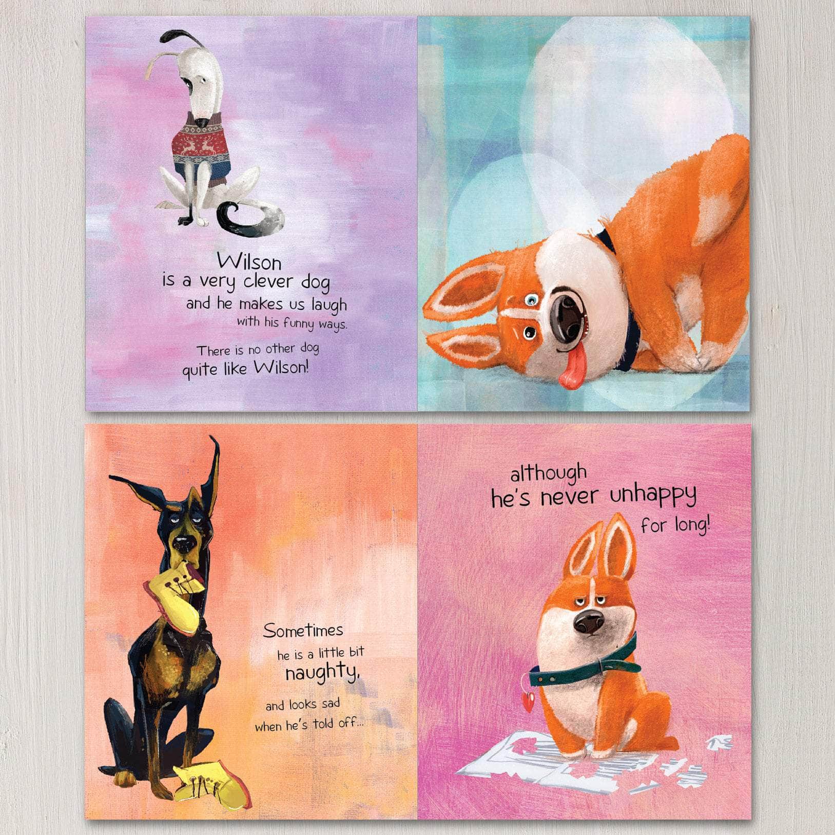Discover your dog's adventures in our children's story book. Although we can't paint your actual dog, we've included lots of wonderful breeds and humorous characters for dog lovers everywhere.