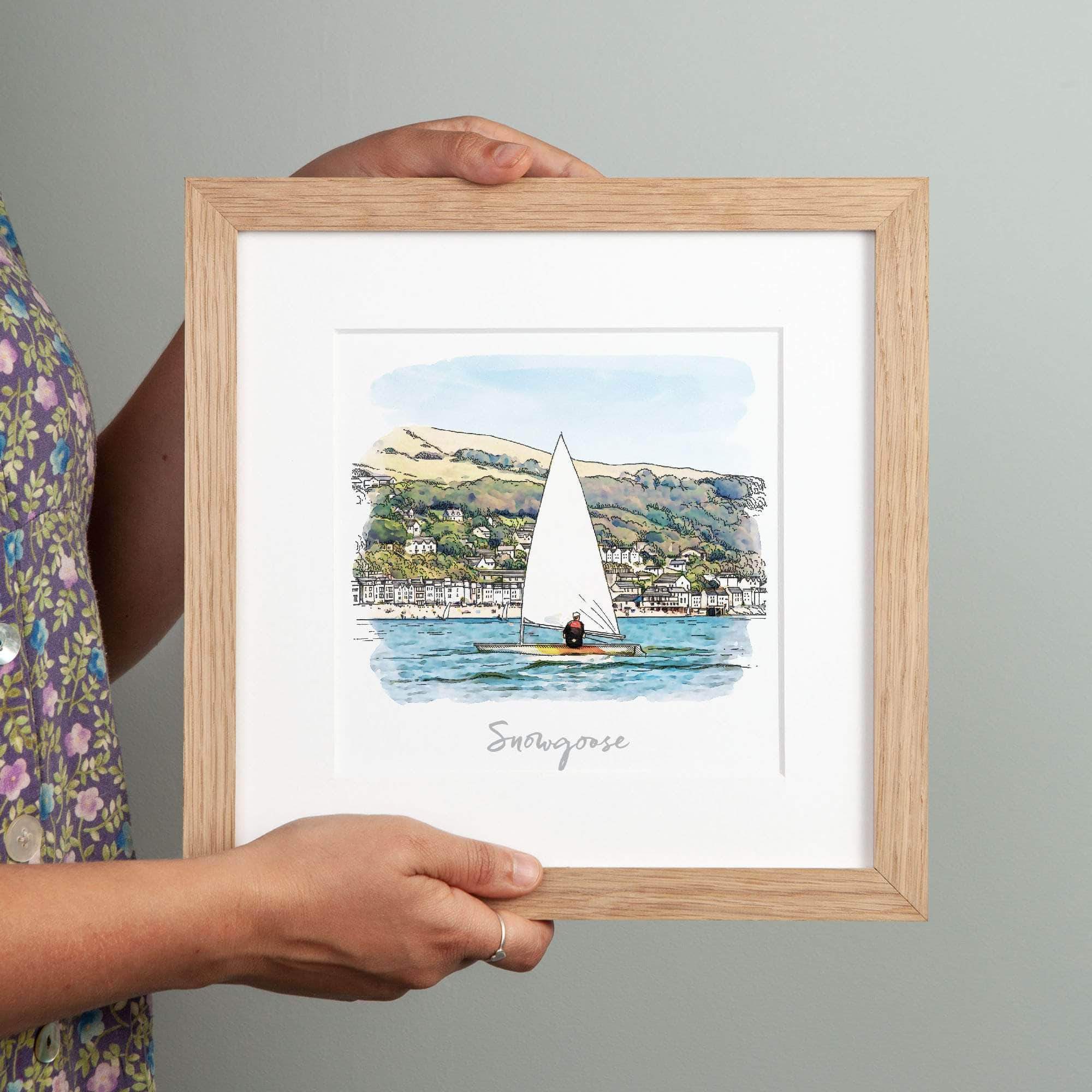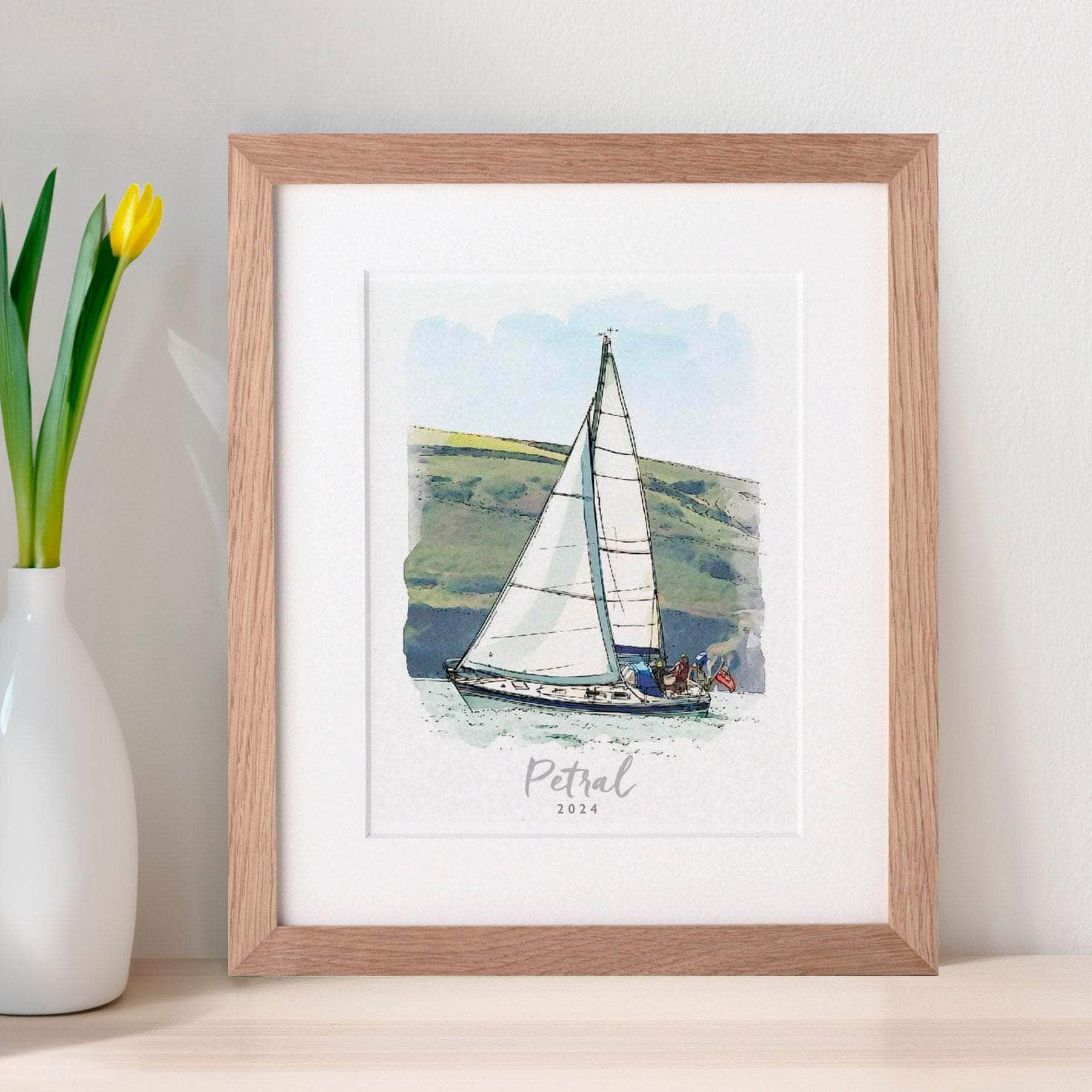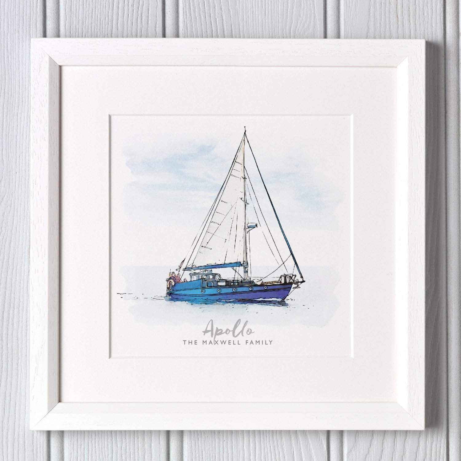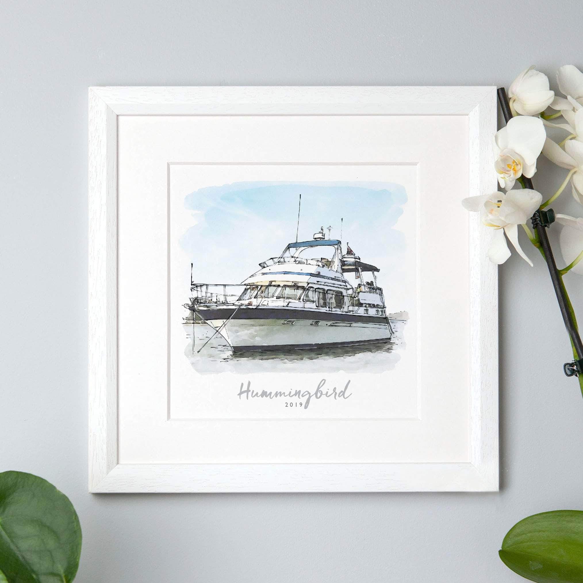 Capture the charm of your boat with a bespoke, hand-drawn watercolour illustration. Based on your photograph, our talented artists in Devon create beautiful, personalised sketches in a signature sketchy style, enhanced with painterly watercolour colouring.