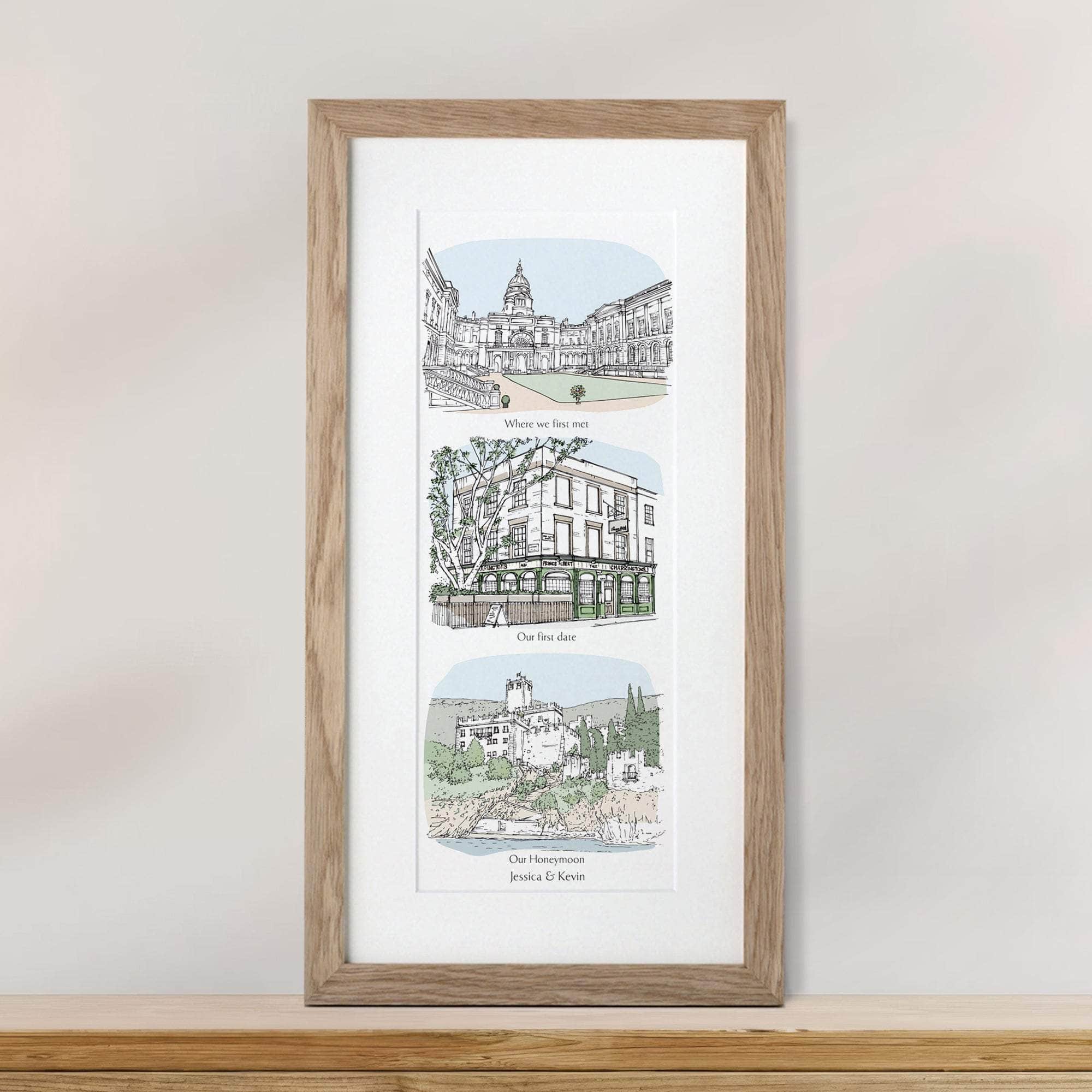 Tell the story of your life in illustration - it could be your houses, or wedding and honeymoon locations, or where you met, had your proposal, and were married - it's up to you!