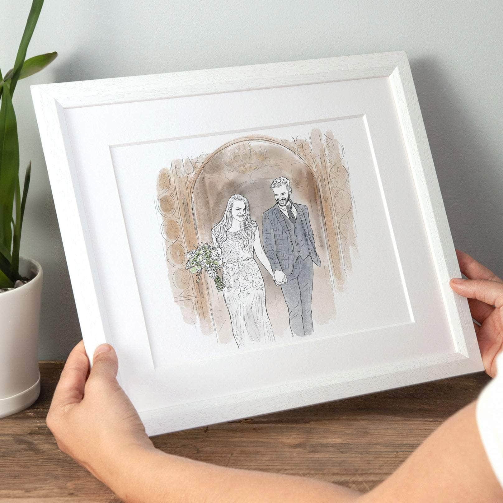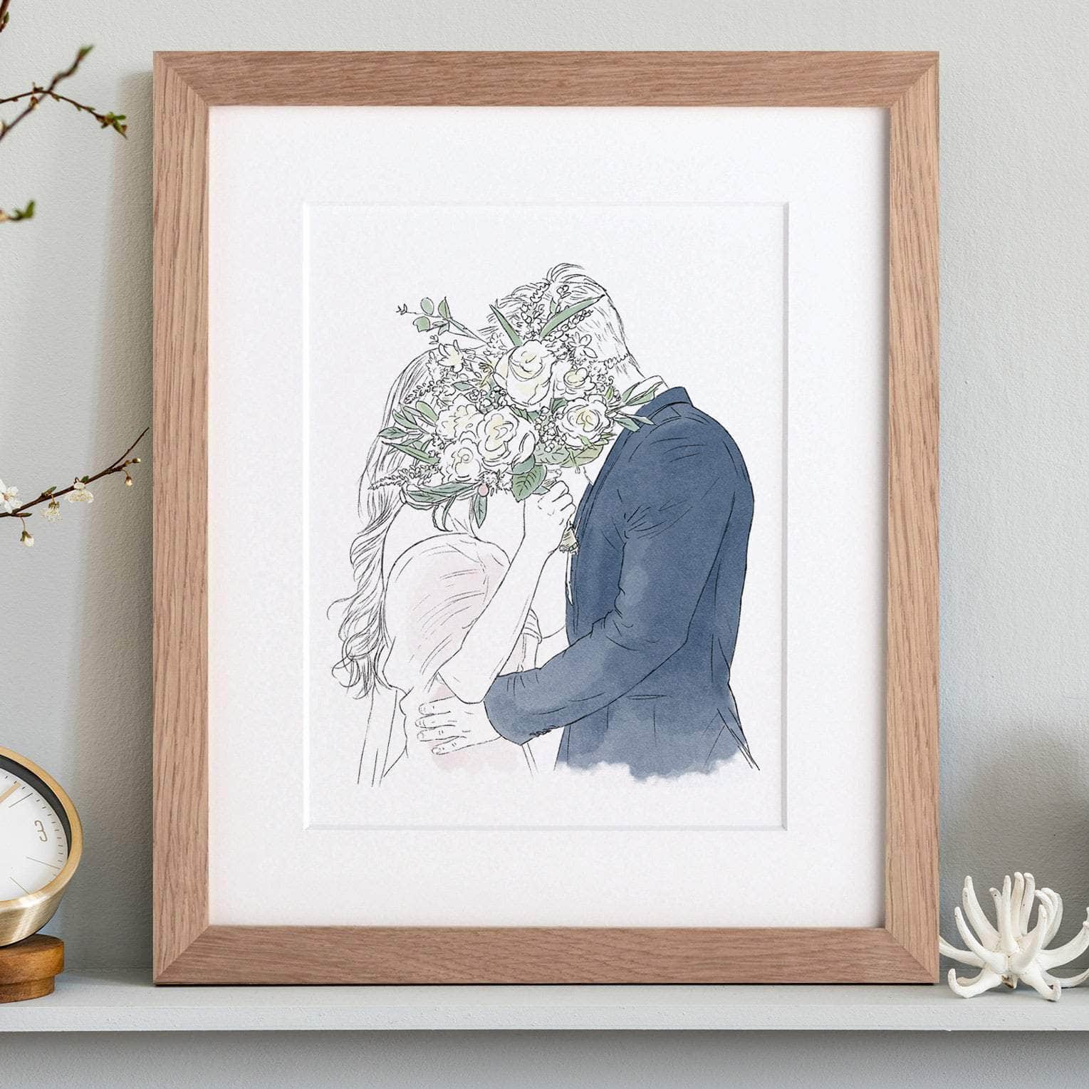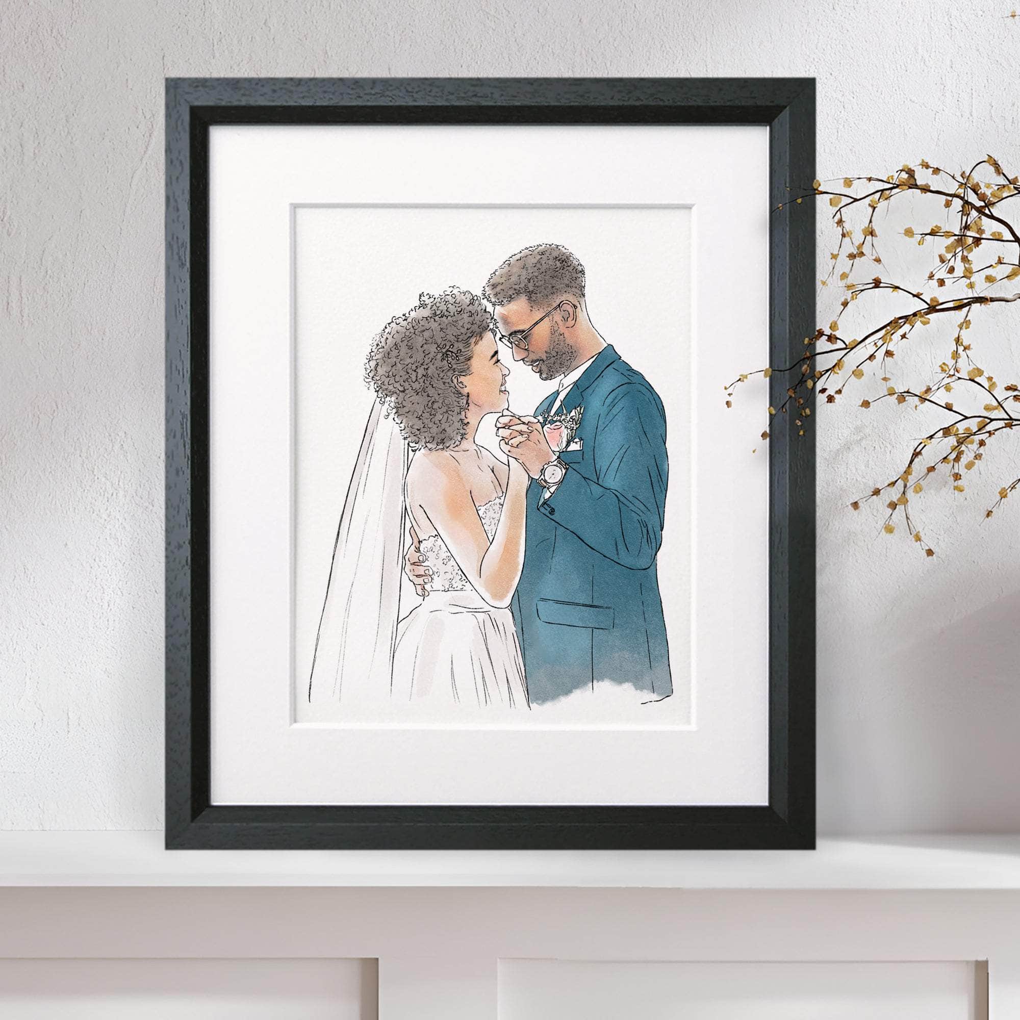 A personalised watercolour sketch based on a favourite photograph, hand-drawn by artists working in Devon. A special keepsake celebrating those moments between a couple- an engagement, anniversary, wedding, or just because!