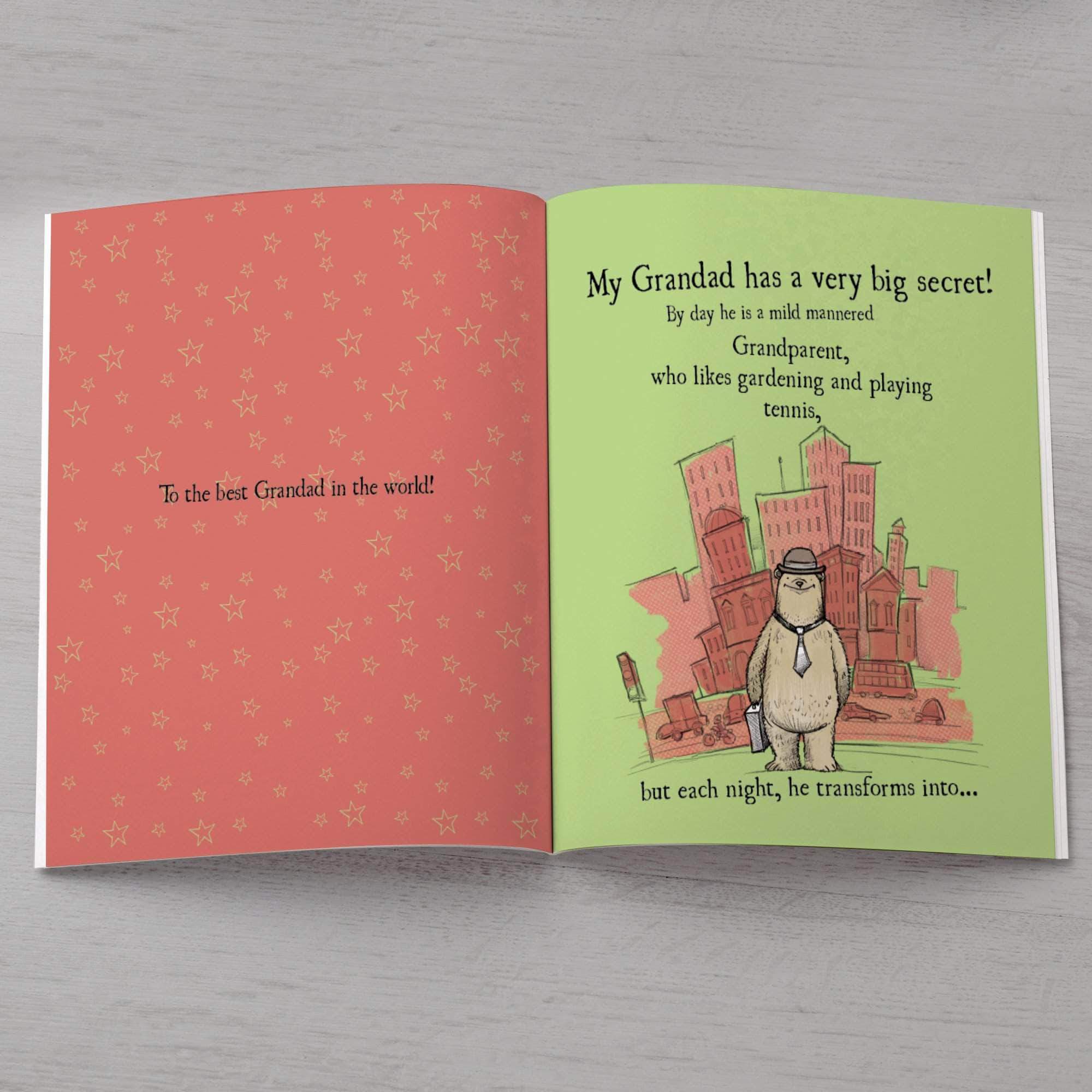 Personalised throughout with what your Grandad loves - from his daily activities, where he lives, favourite food and clothes, hobbies, and what he is best at (reading bedtime stories!)