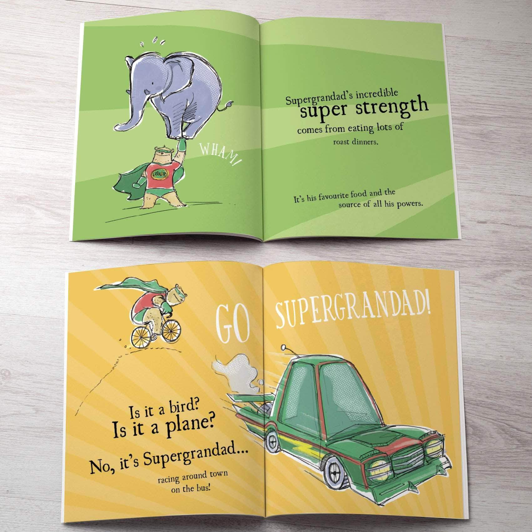 • Select more than one child in the dropdown, and we'll change the story inside to be "Our Grandad" etc. The children are also included as Supergrandad's amazing sidekicks - you can select up to 4 children (baby bears!) to be included in the illustration.