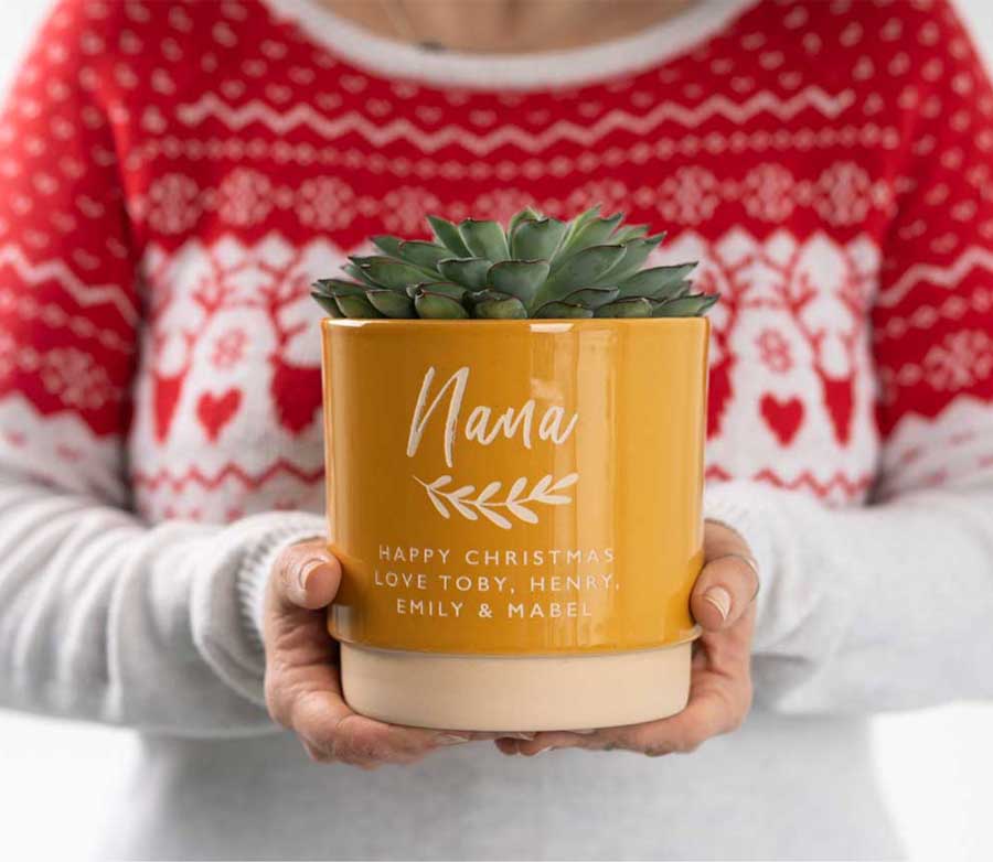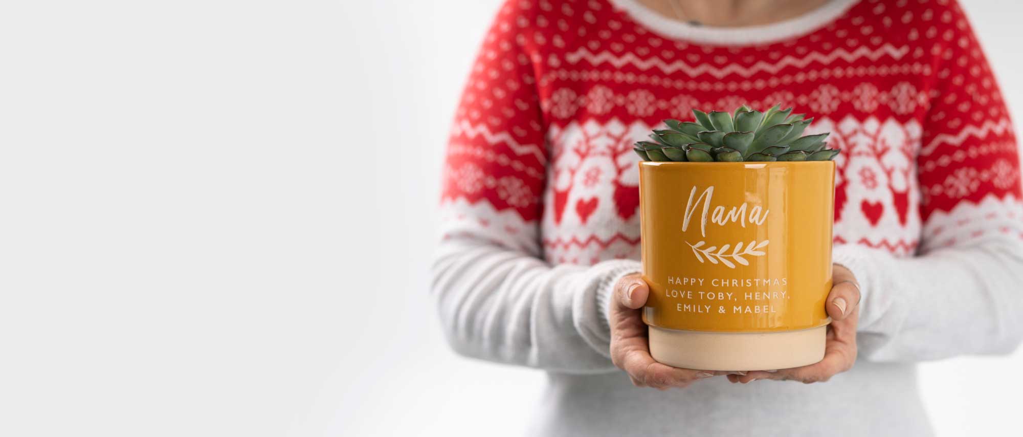A perfect gift for the bride and groom - the pot is engraved with their wedding date in a wreath with your choice of text below- text line one, e.g. The wedding of, with the names below.