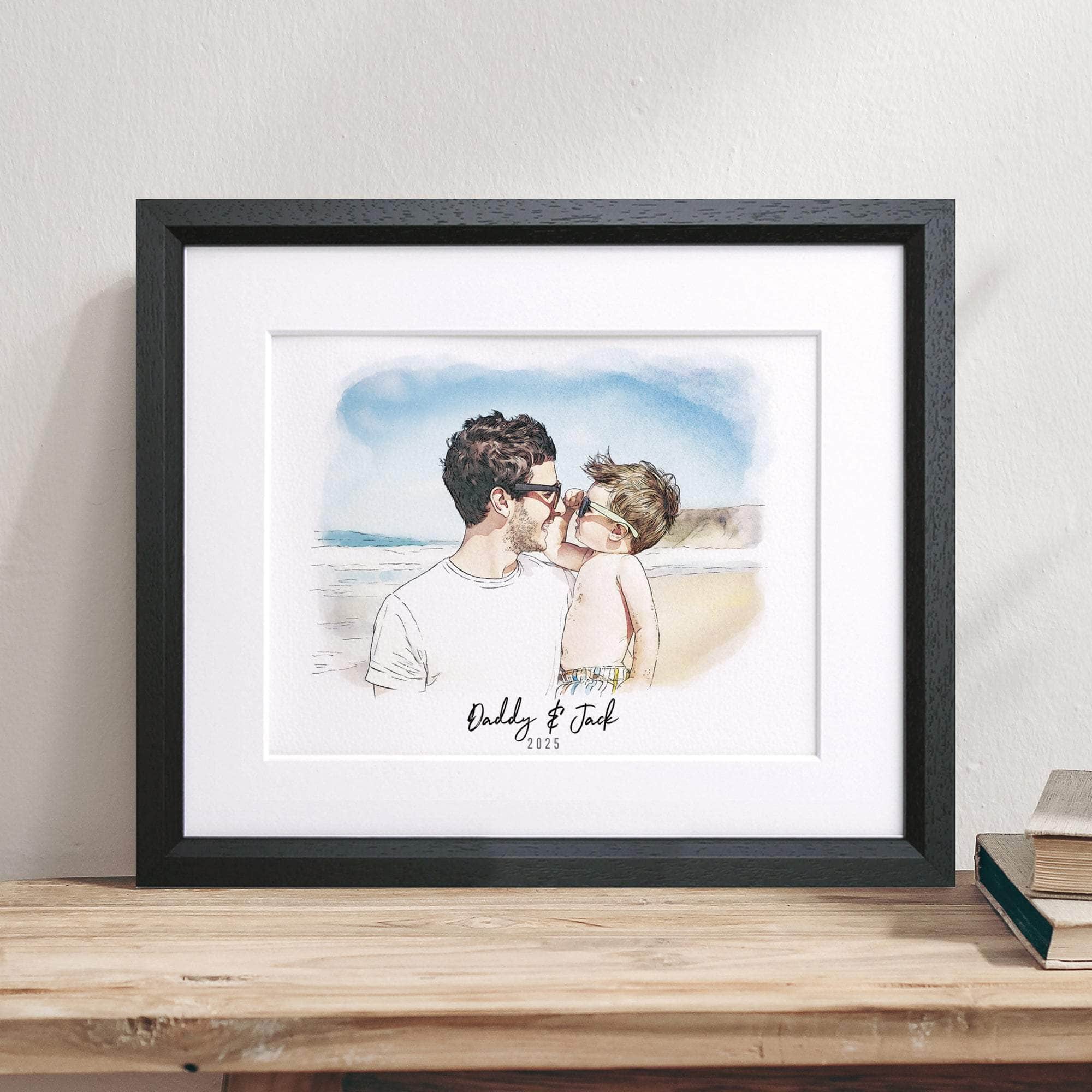 A personalised line illustration, hand-drawn from a favourite photograph in graphic black and white line. Simply stylish.