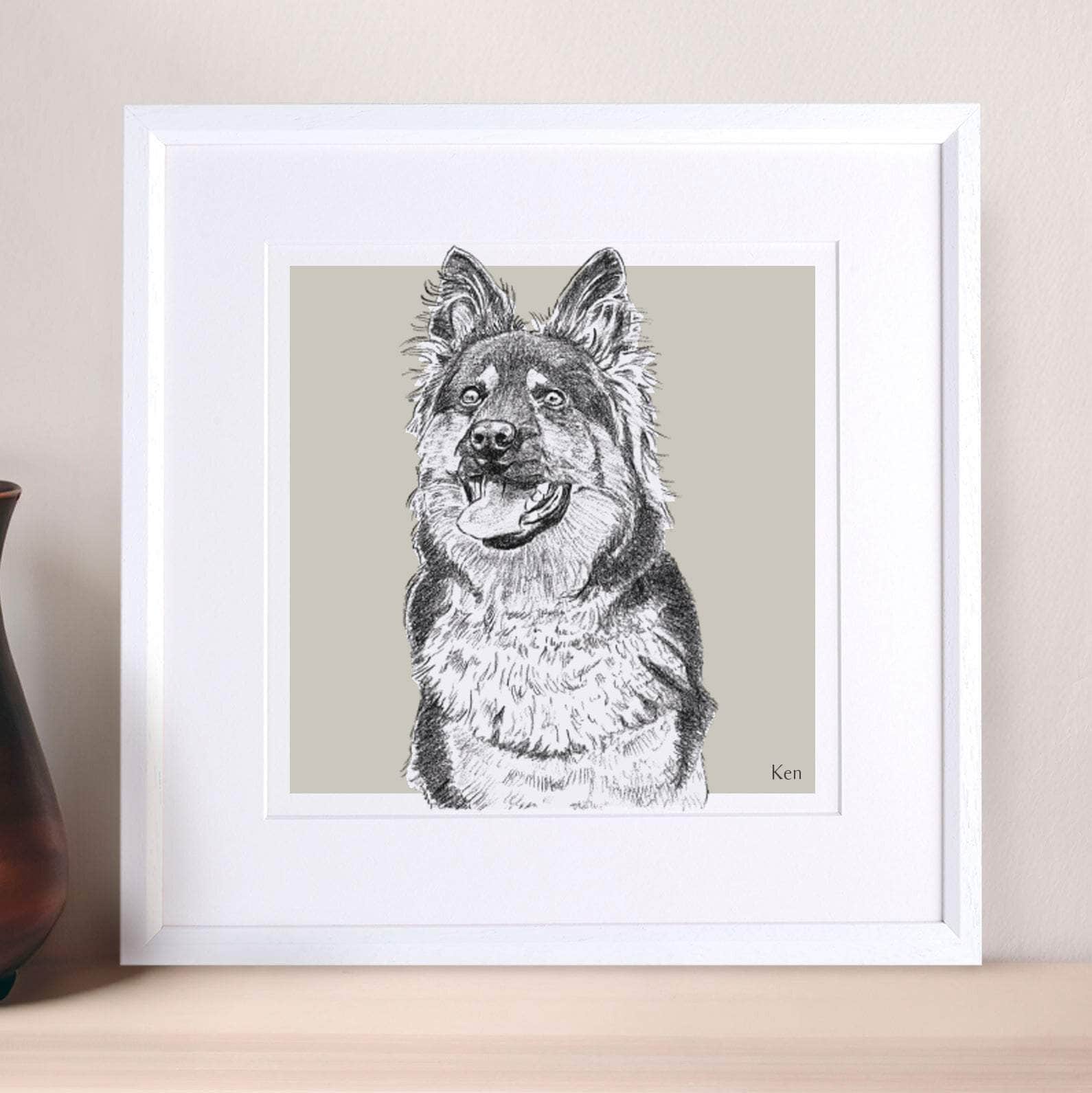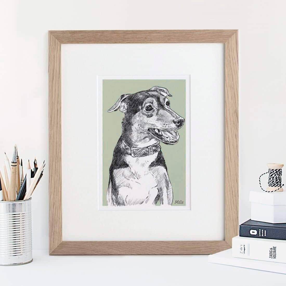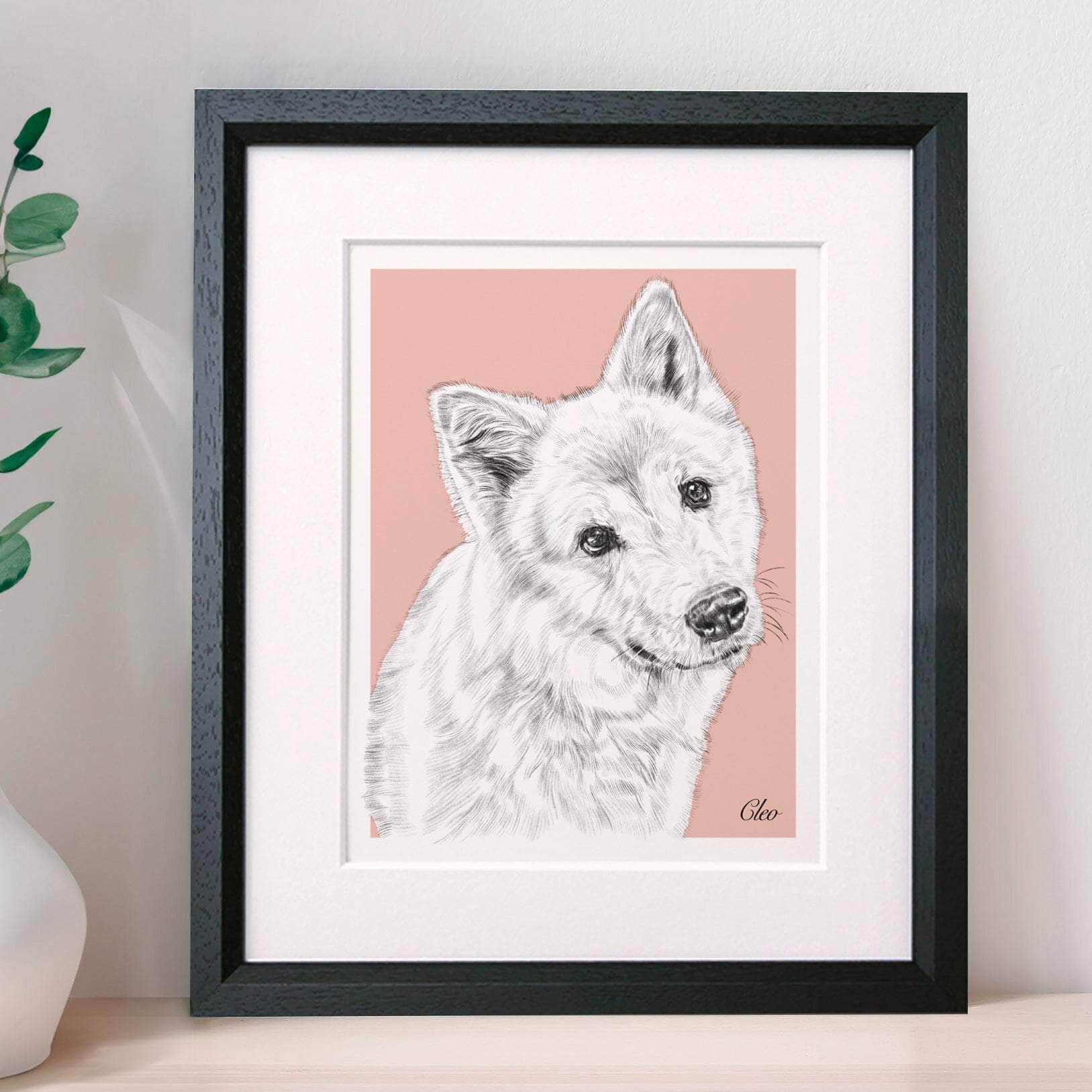 Simply upload your photo to the order form above. We will draw from the perspective of your image, but let us know if you want anything excluding in your notes (eg collar or lead).