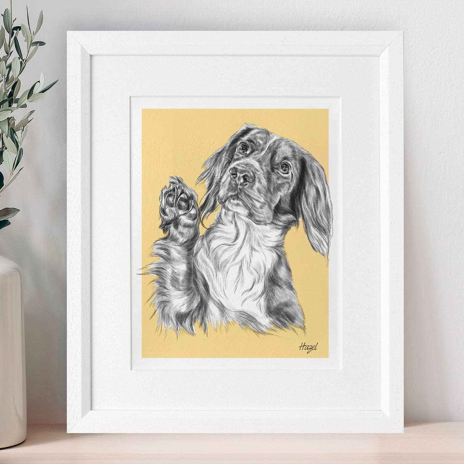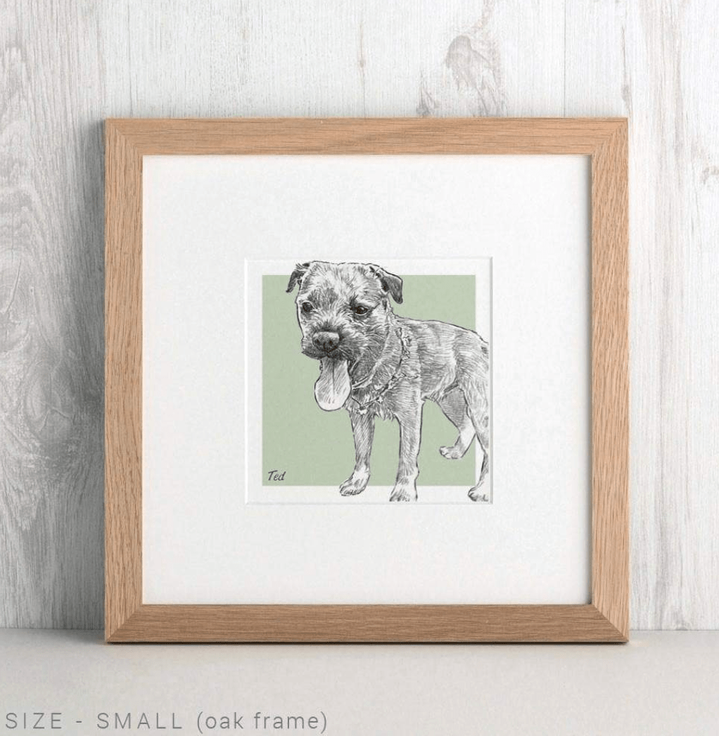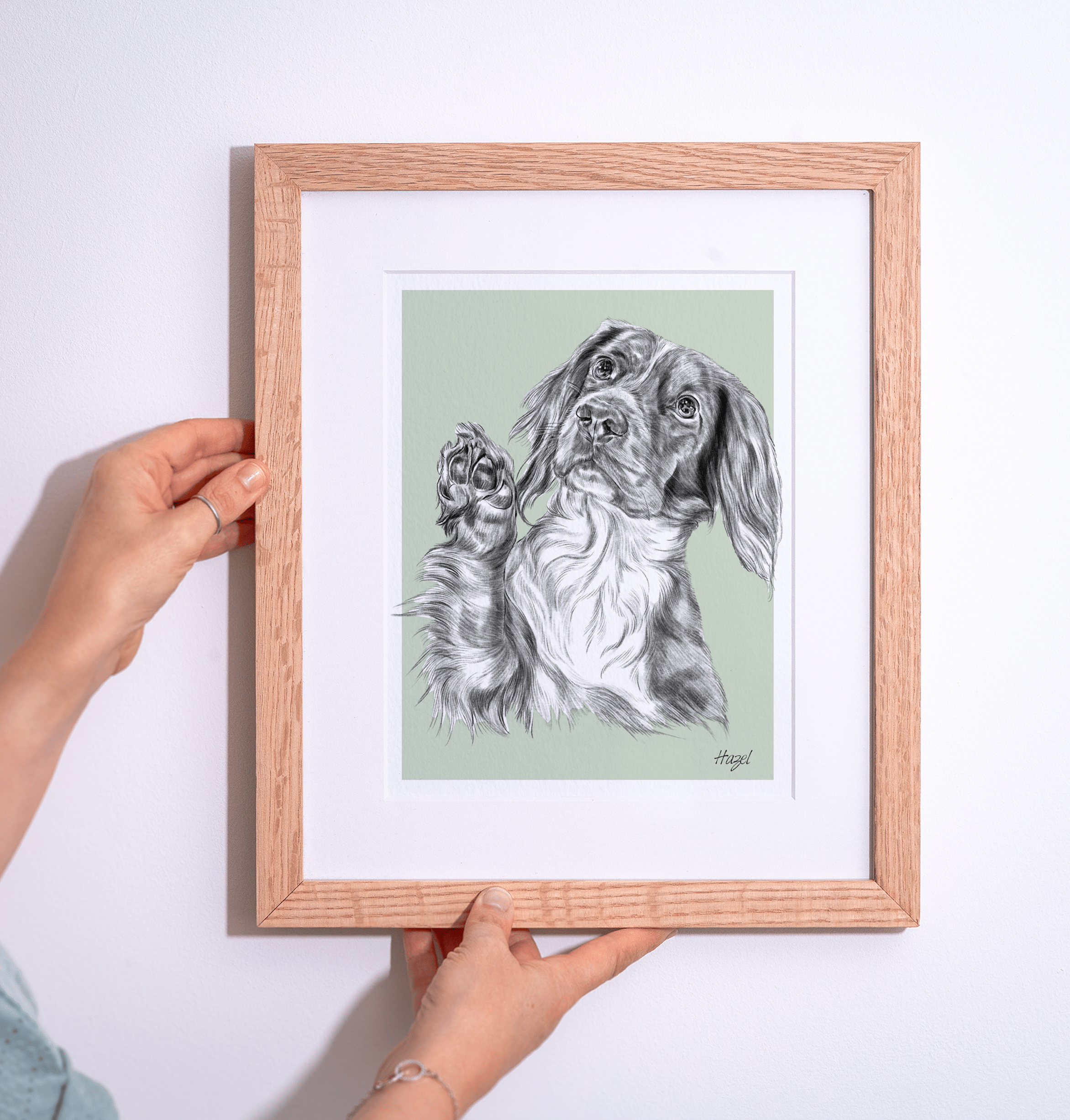 Simply upload your photo to the order form above. We will draw from the perspective of your image, but let us know if you want anything excluding in your notes (eg collar or lead).