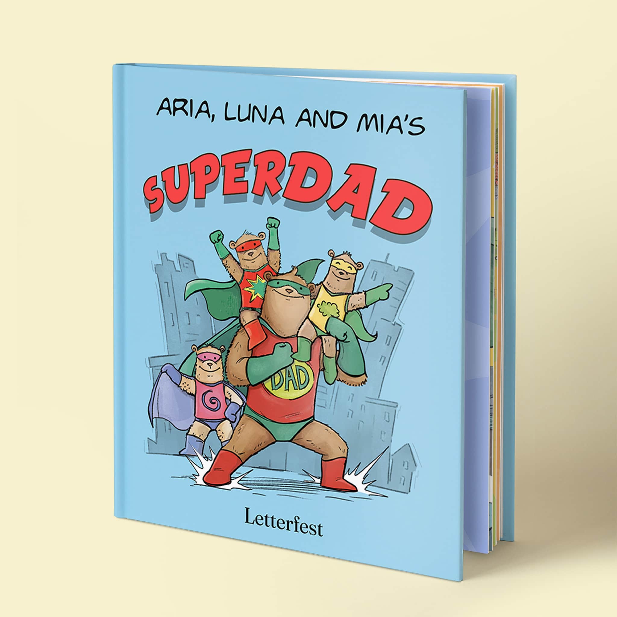 Celebrate how amazing your Daddy is with this fun personalised superhero story book all about your Superdad! The perfect gift for Father's Day.