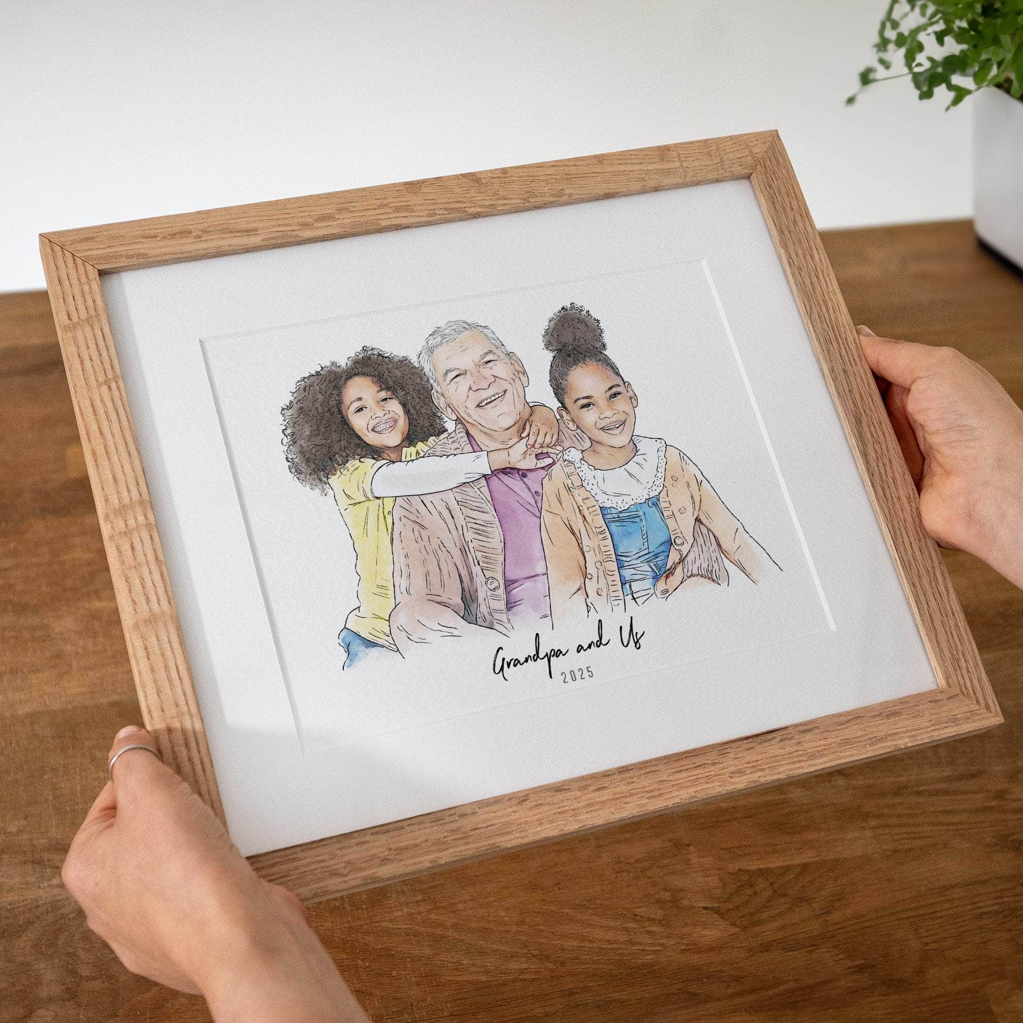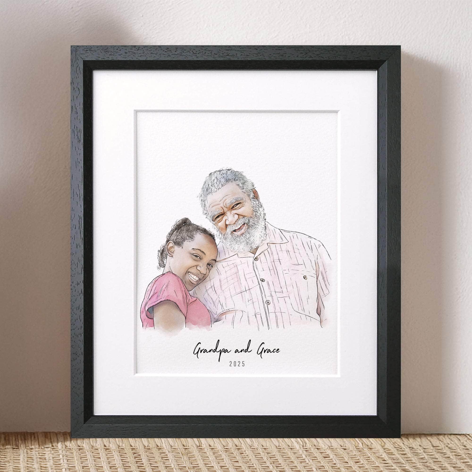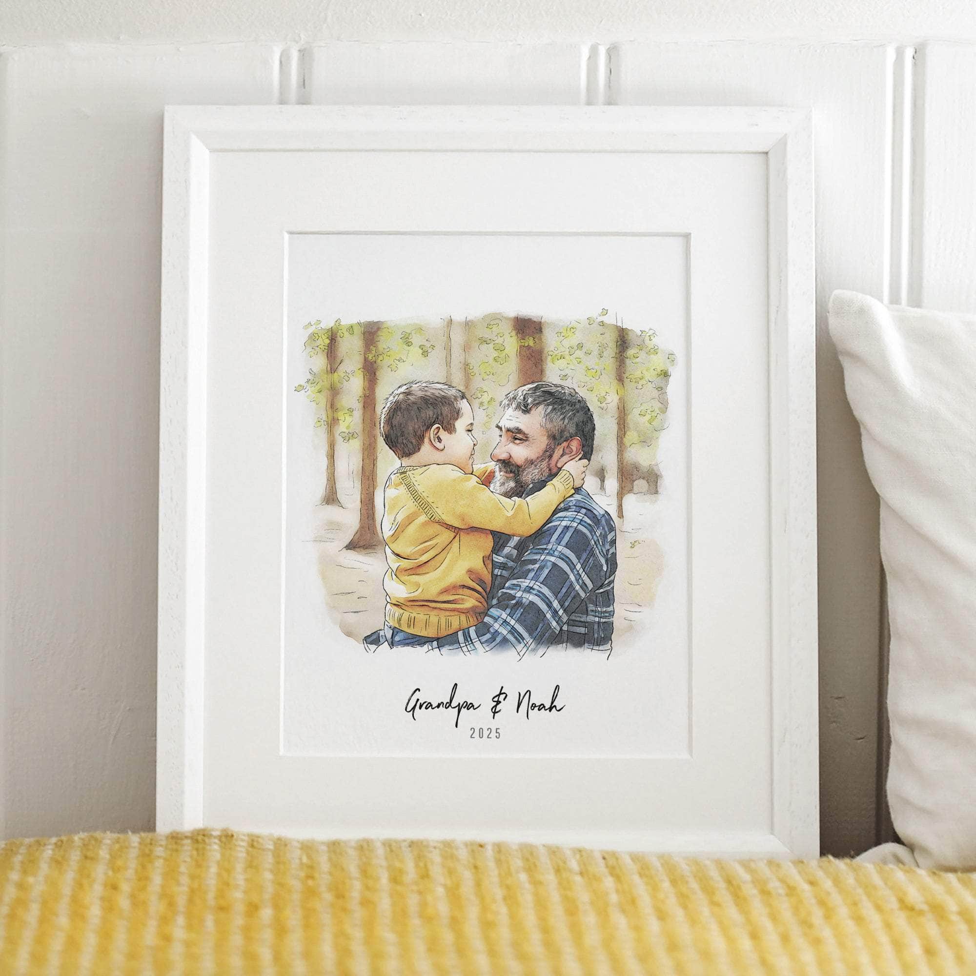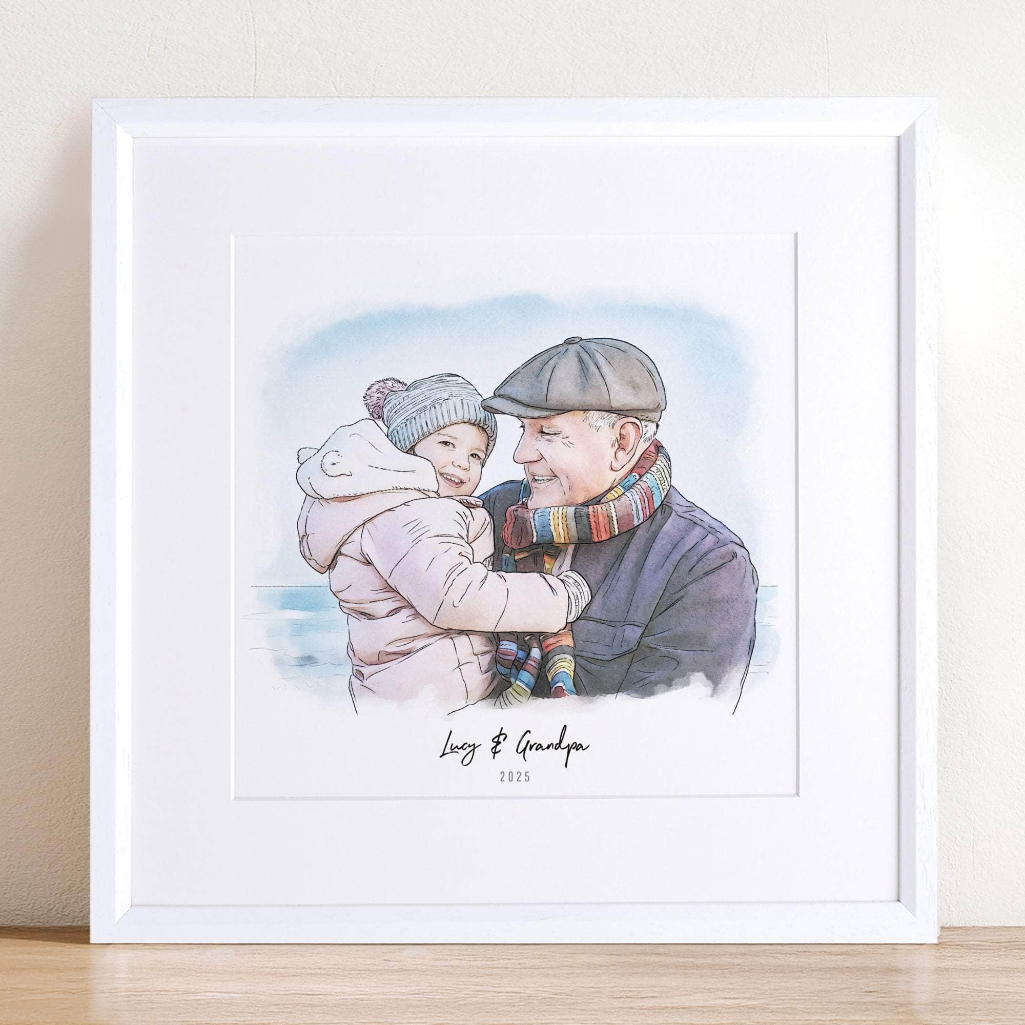 Celebrate the unique bond between a grandad and his grandchild with Grandad and Me – a beautifully illustrated, portrait from your photo, finished in watercolour. Capturing shared adventures and treasured memories, it's the perfect gift for birthdays, Father’s Day, or just because.