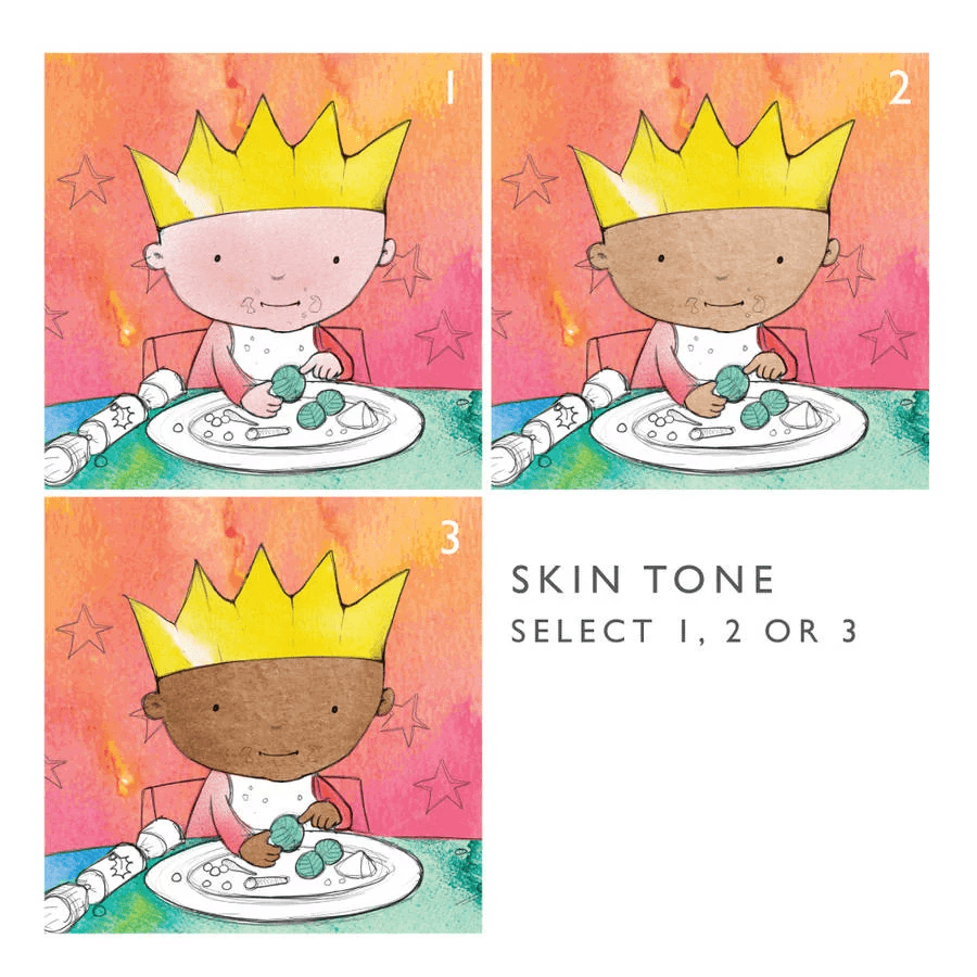• You can select the skin colour which best suits your child (click on the image thumbnail to view).