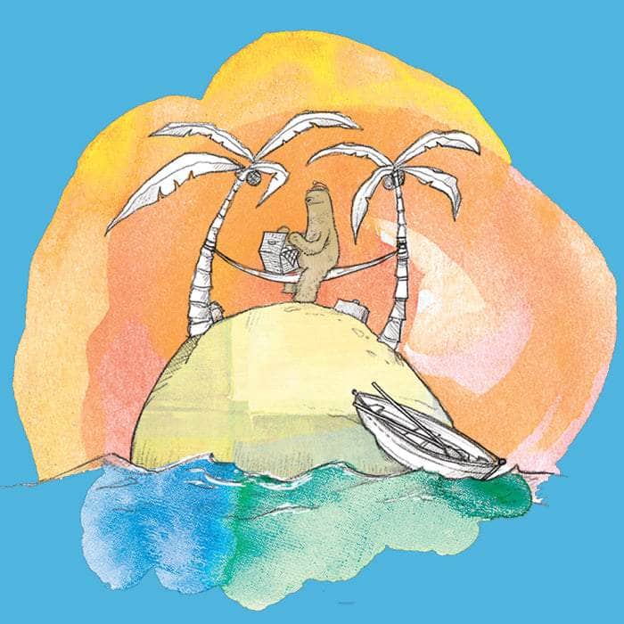 lllustrated with humorous drawings of a bear over vibrant watercolour backgrounds, with each page having a different theme - from desert, jungle, mountains, under the sea etc.