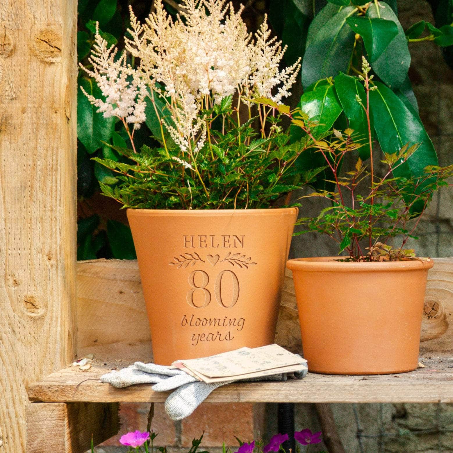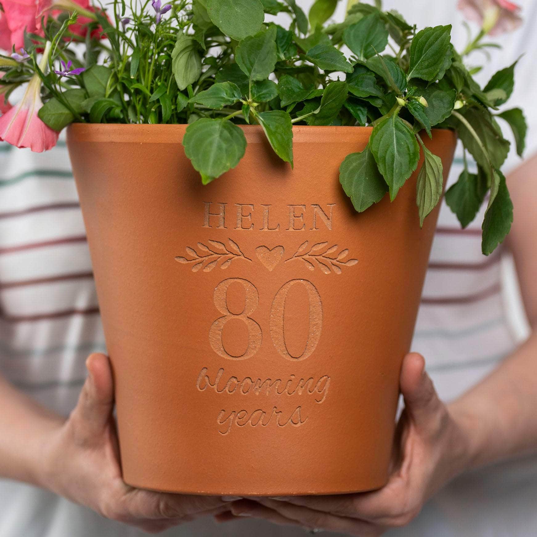 An elegant terracotta flower pot engraved with a meaningful number - perfect to celebrate those special milestone birthdays like an eightieth.