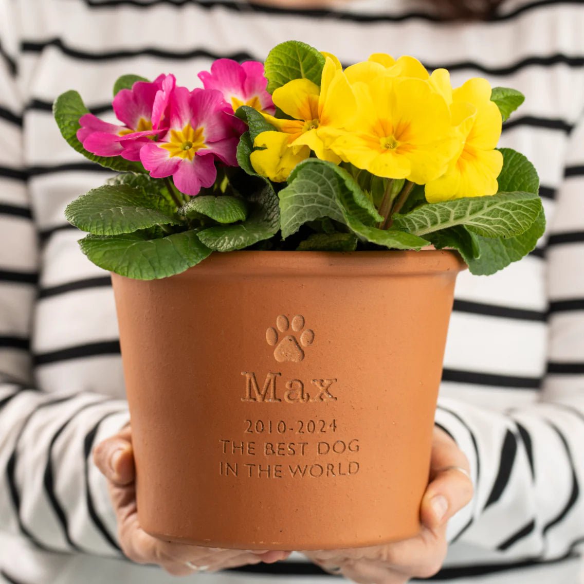 Celebrate your wonderful pet with our personalised memorial plant pot - engraved to order and available with flower or herb seeds to remember them always.