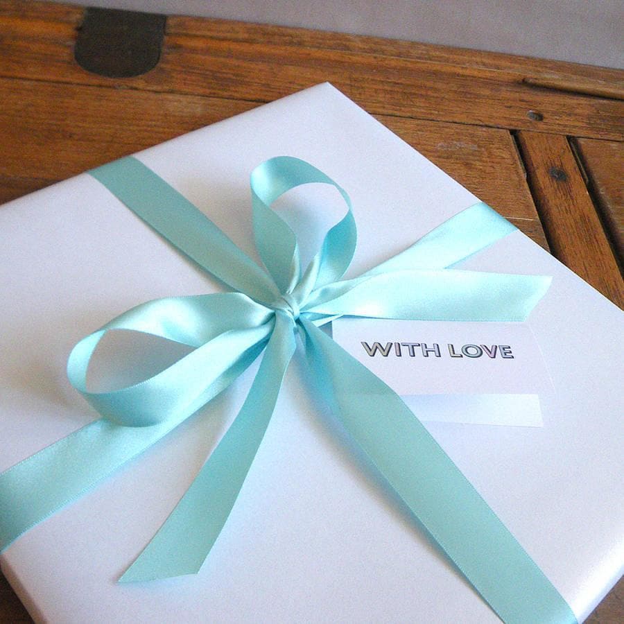 Gift Boxes are available - 12x12x4.5cm in soft white embossed card tied with ribbon.