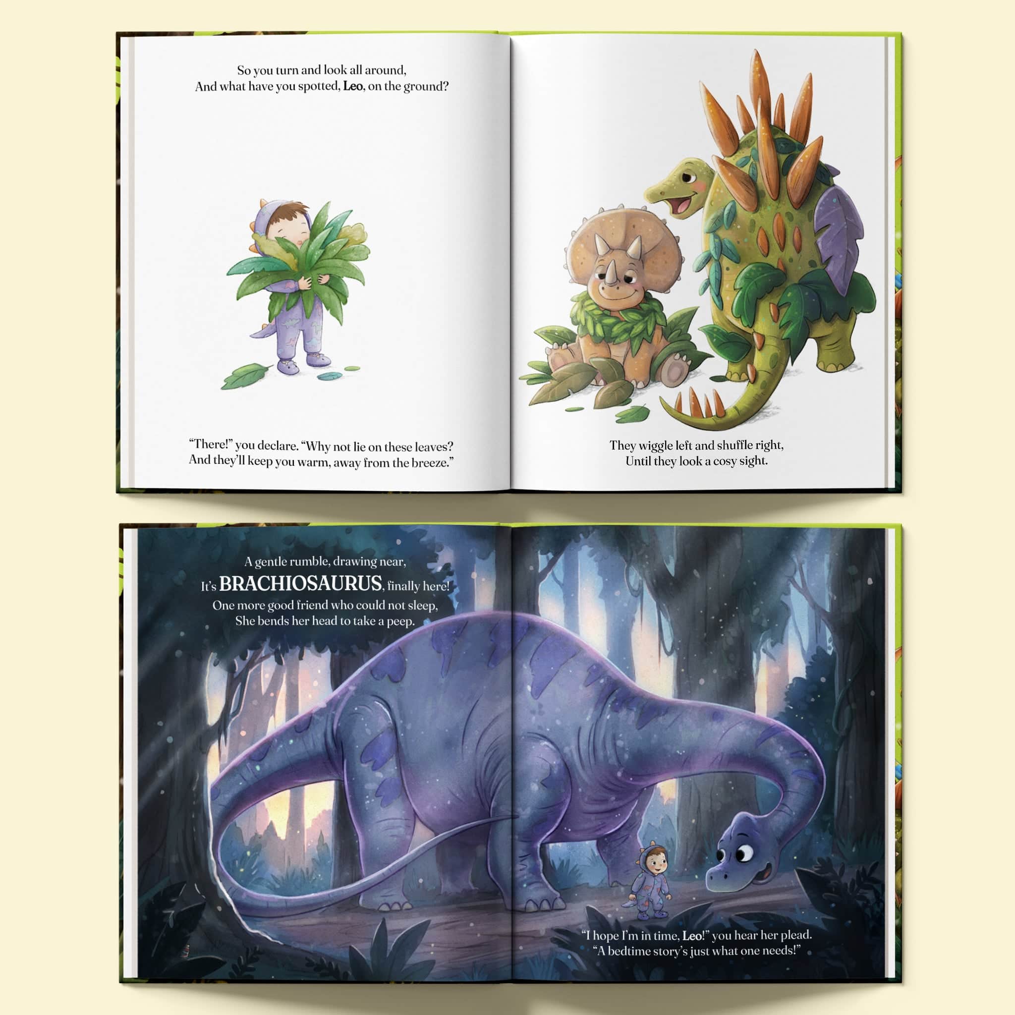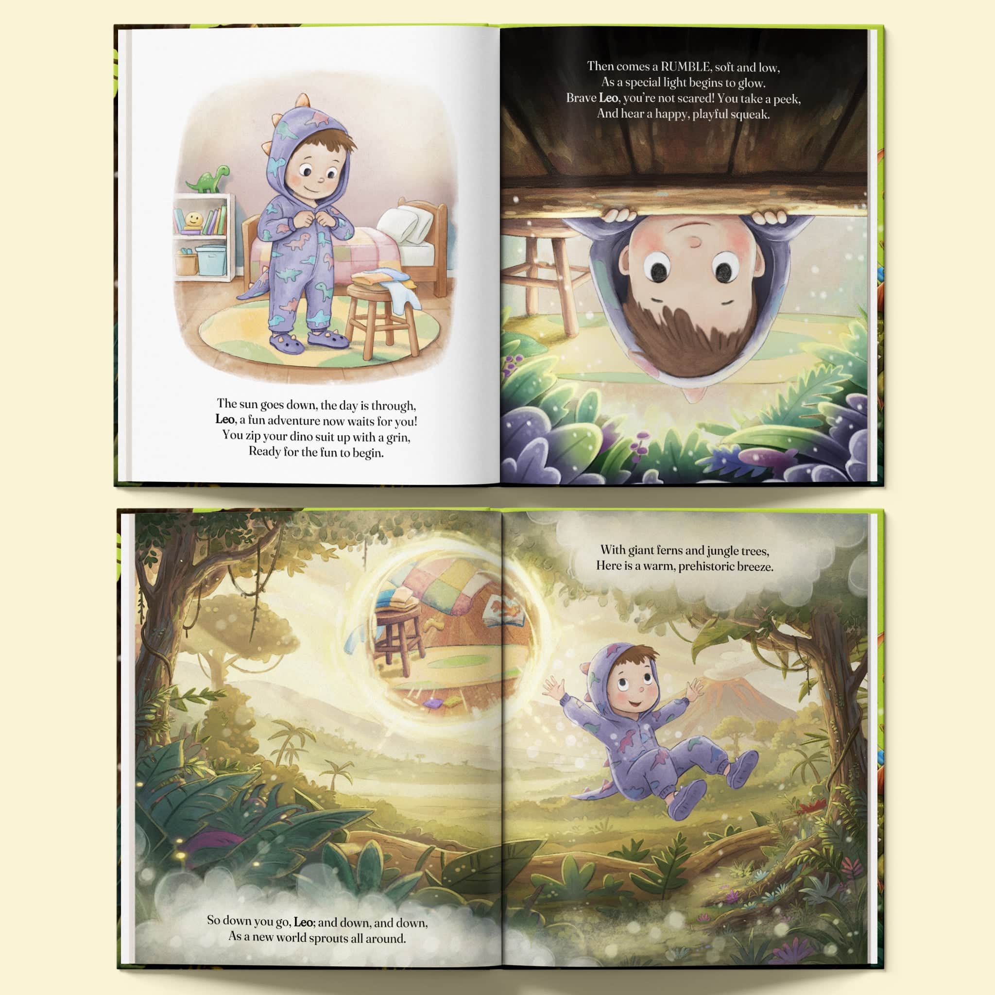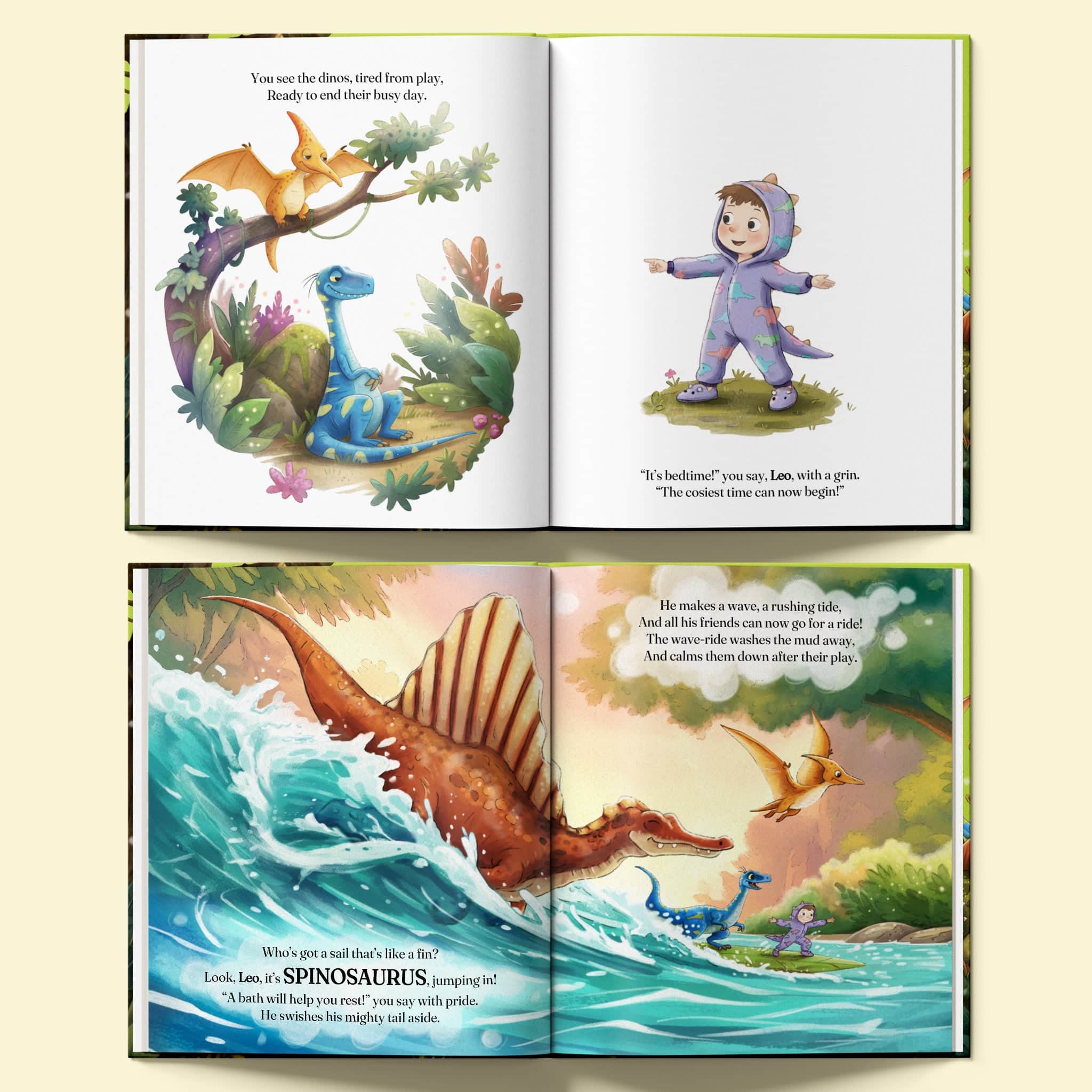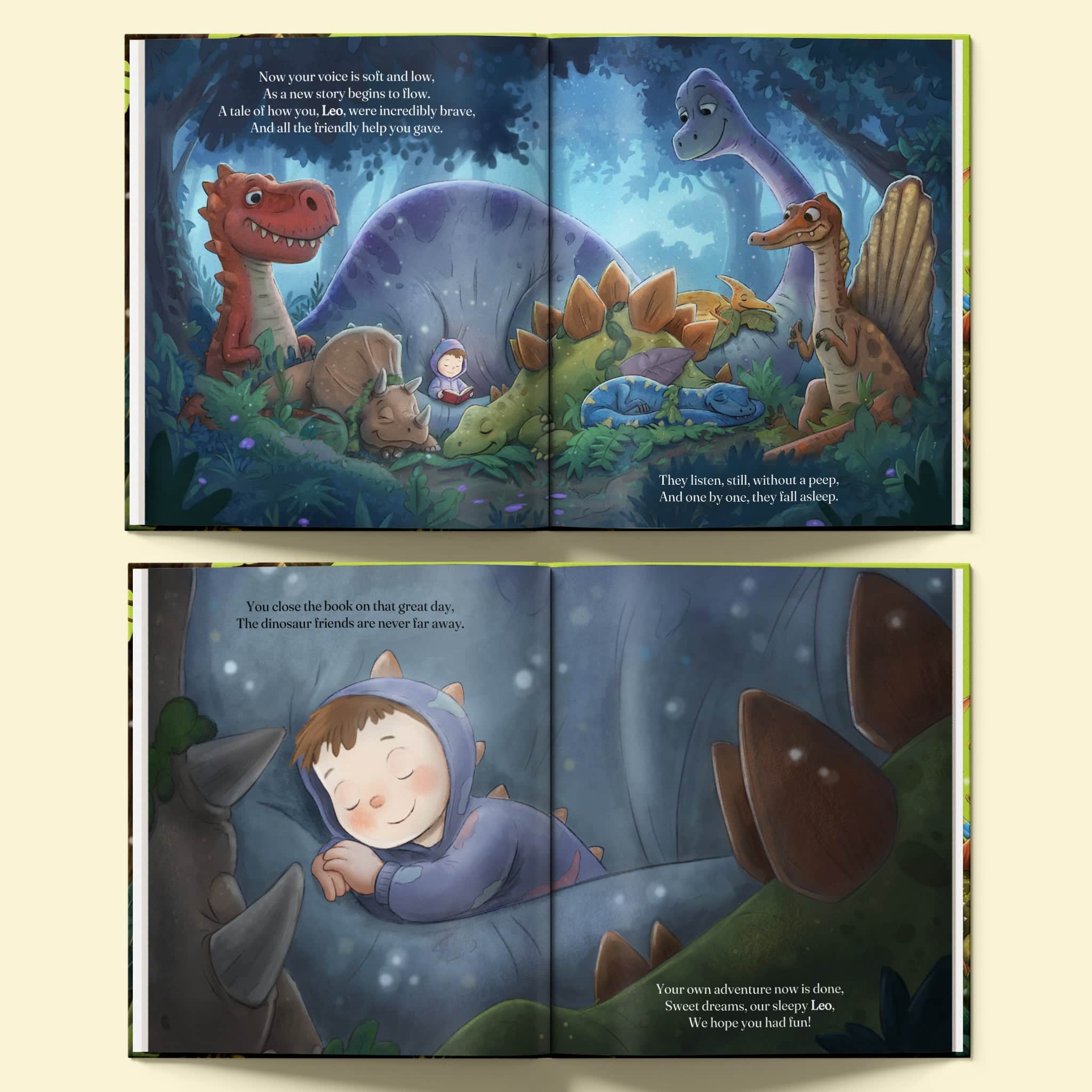Your child becomes the hero of the story - with their own name and the custom avatar featured on every page. Watch their eyes light up as they zip up their dino suit, meet seven friendly dinosaurs, and help each one get ready for bed.