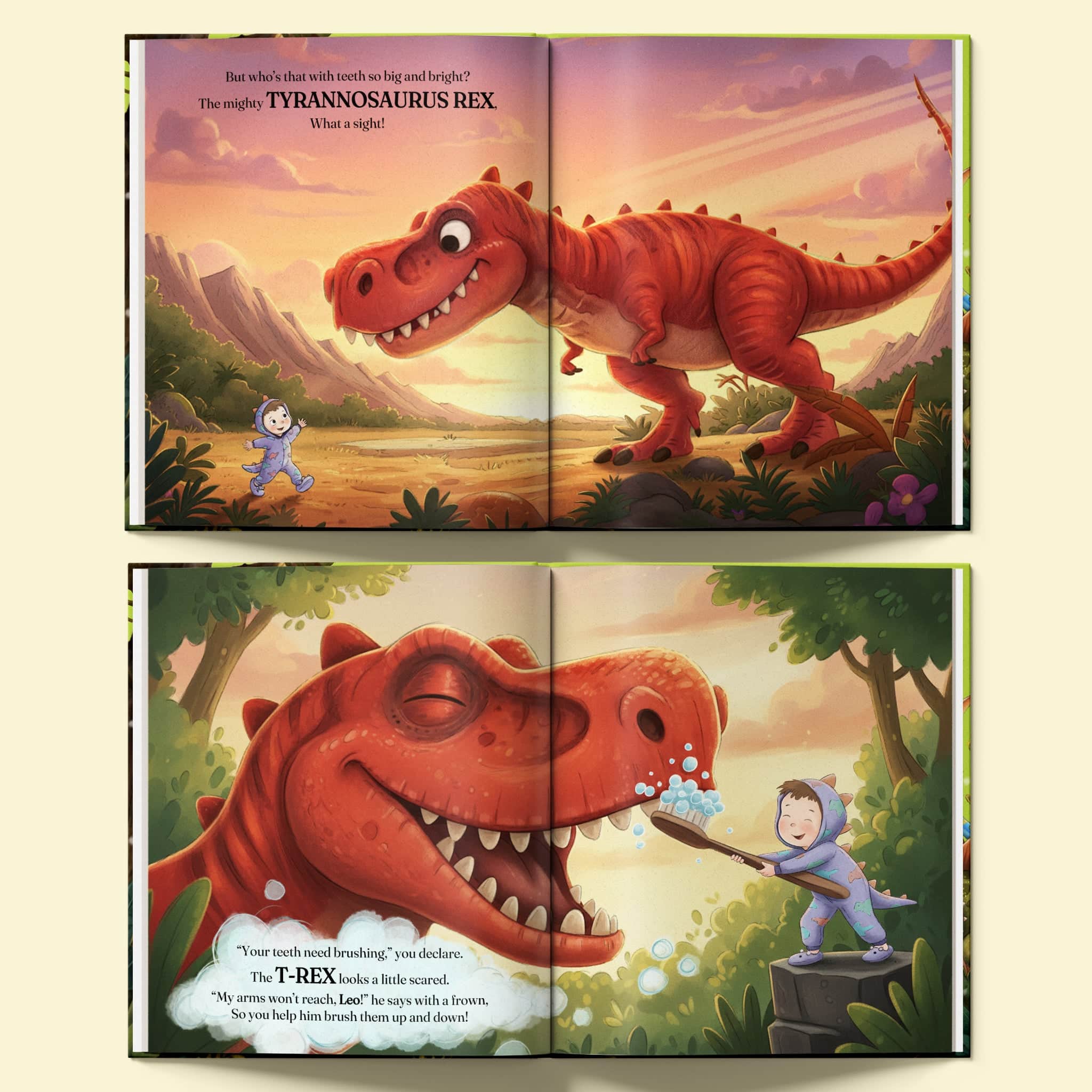 From brushing the T-Rex’s teeth to reading a story with Brachiosaurus, every moment feels personal, cozy, and full of wonder.