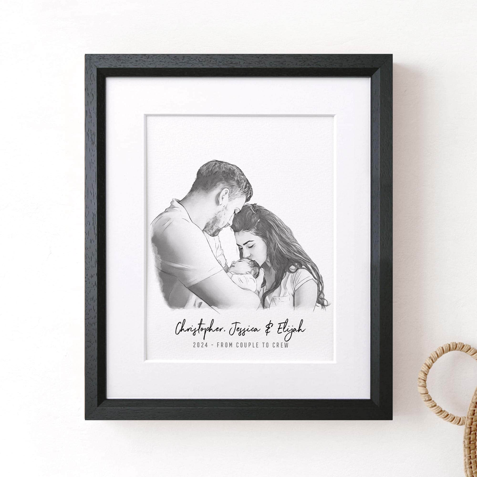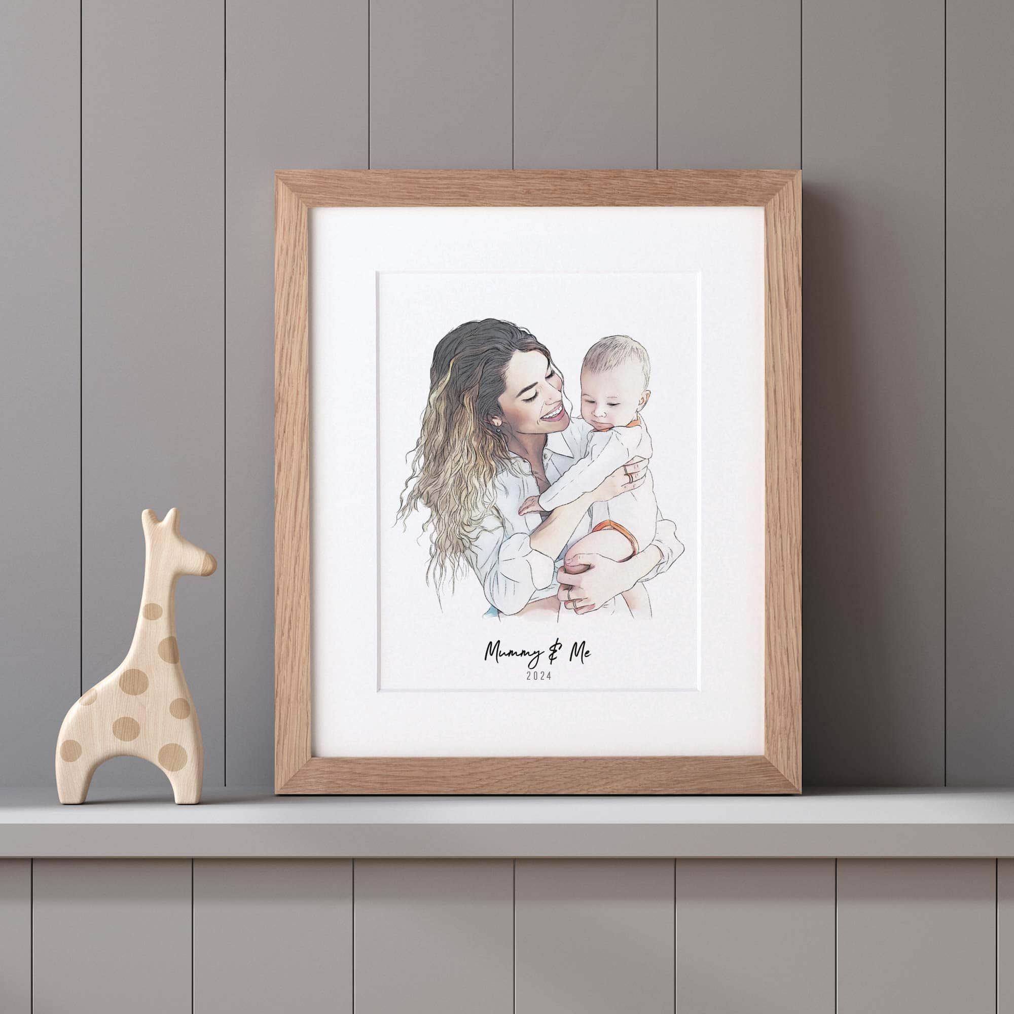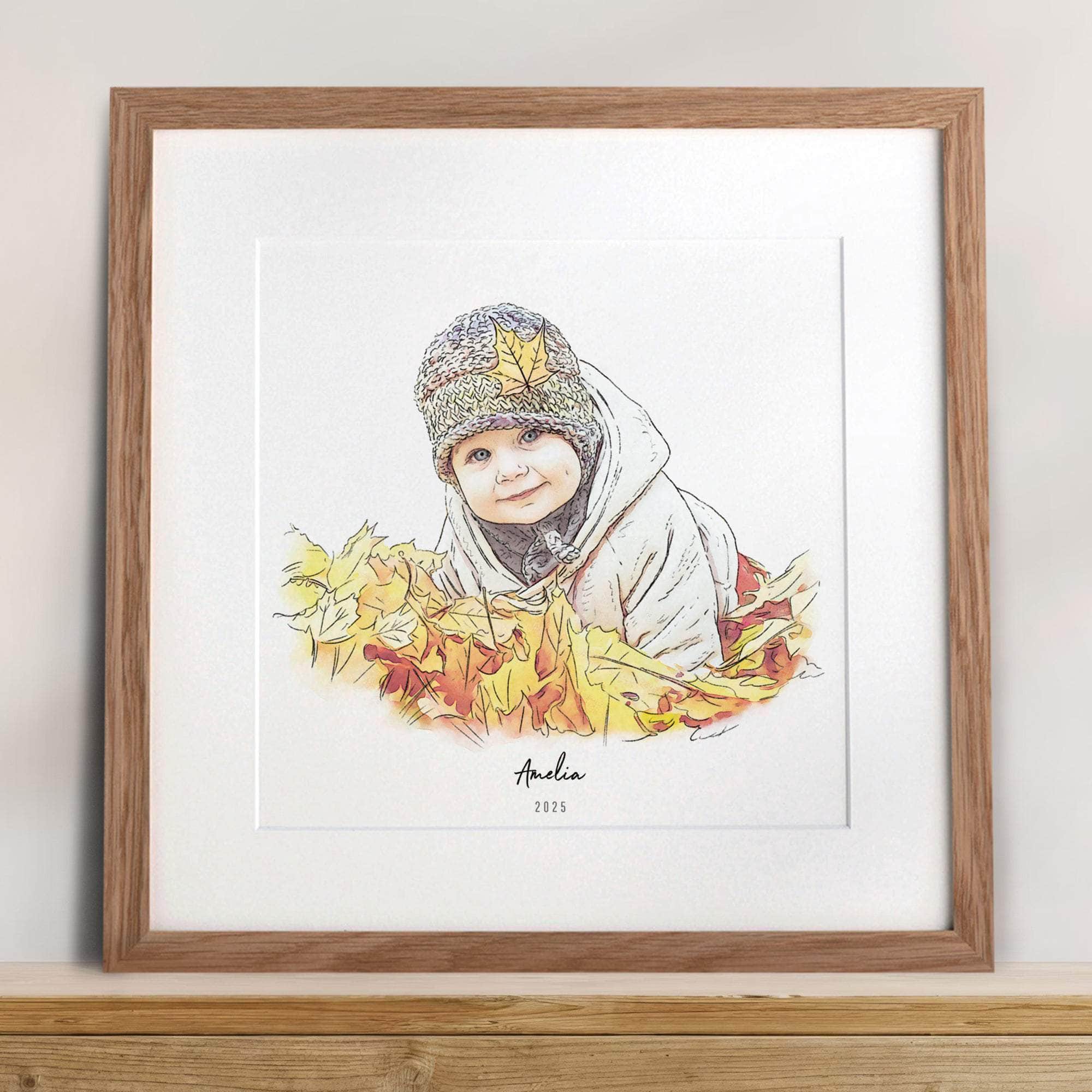 Each illustration starts with a digital sketch based on your photo, which is then enhanced by our talented artists, adding unique details and personal touches. We never use AI or filters—just authentic craftsmanship from our team. The final artwork is then printed on high-quality, acid-free artist paper.