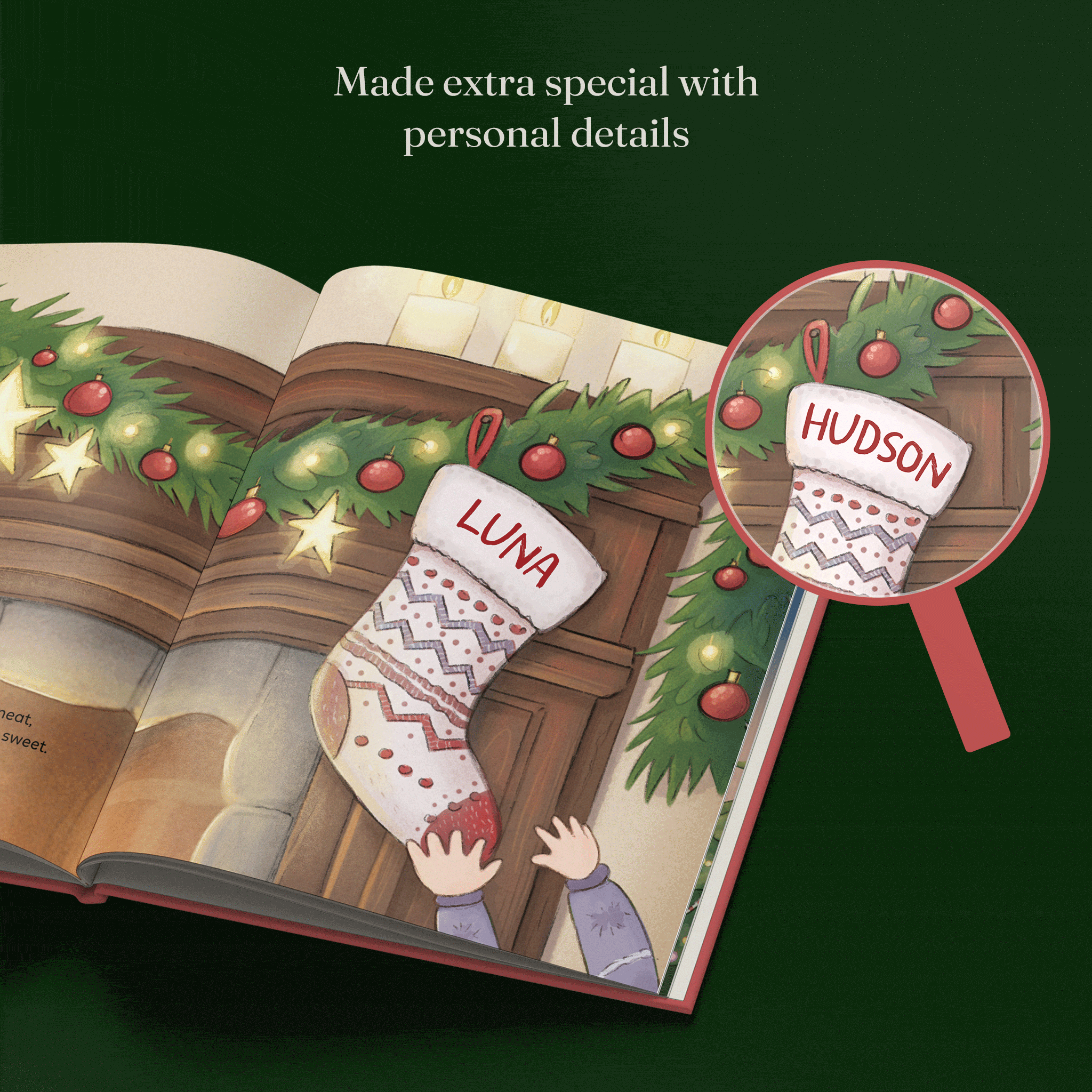 Your child becomes the star of the story - with their own name and custom avatar appearing on every page. Watch their excitement as they decorate the tree, bake festive treats, and drift off to sleep on Christmas Eve, surrounded by twinkling lights and the warmth of family.