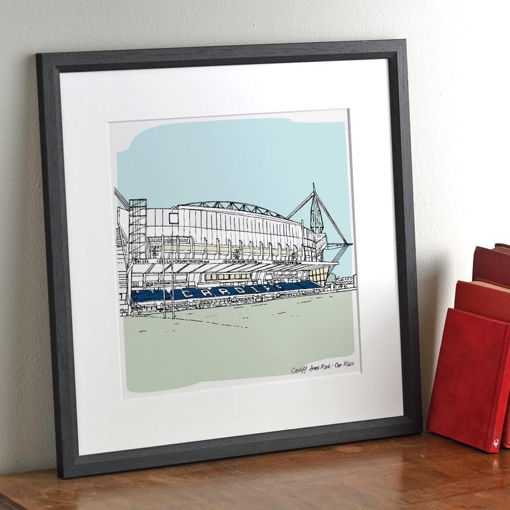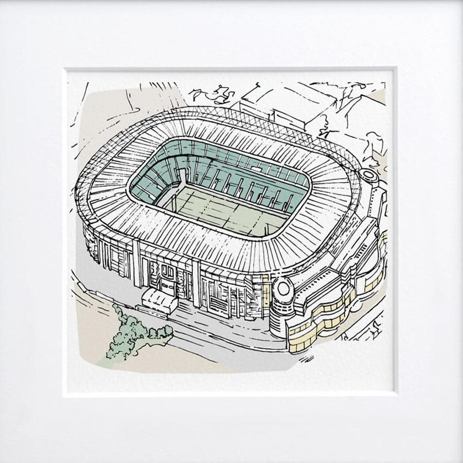 It could be football, rugby, cricket, or a rowing club - the venue will be captured in a graphic illustration to keep forever. The style is clean and contemporary with the sky and surroundings in muted colours.