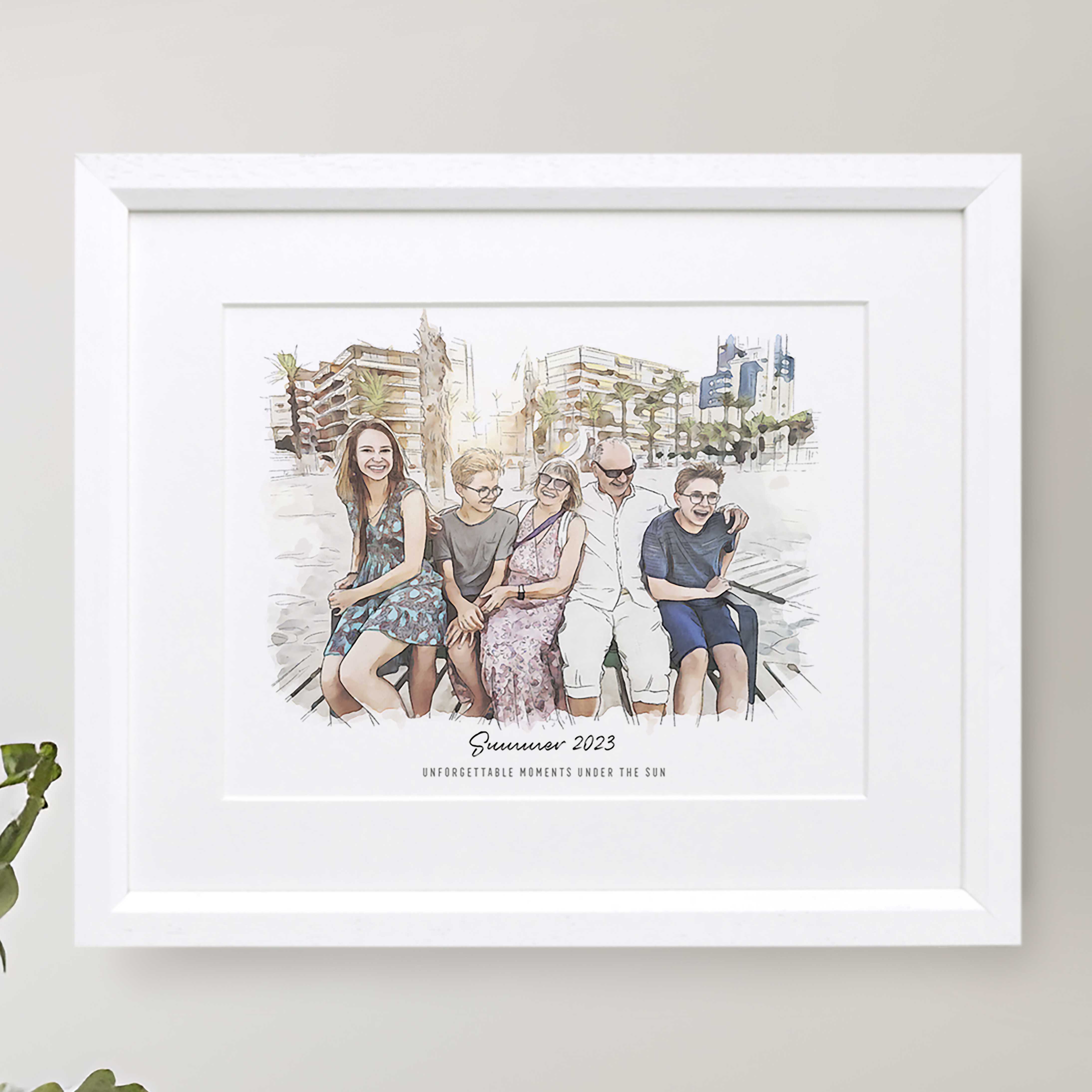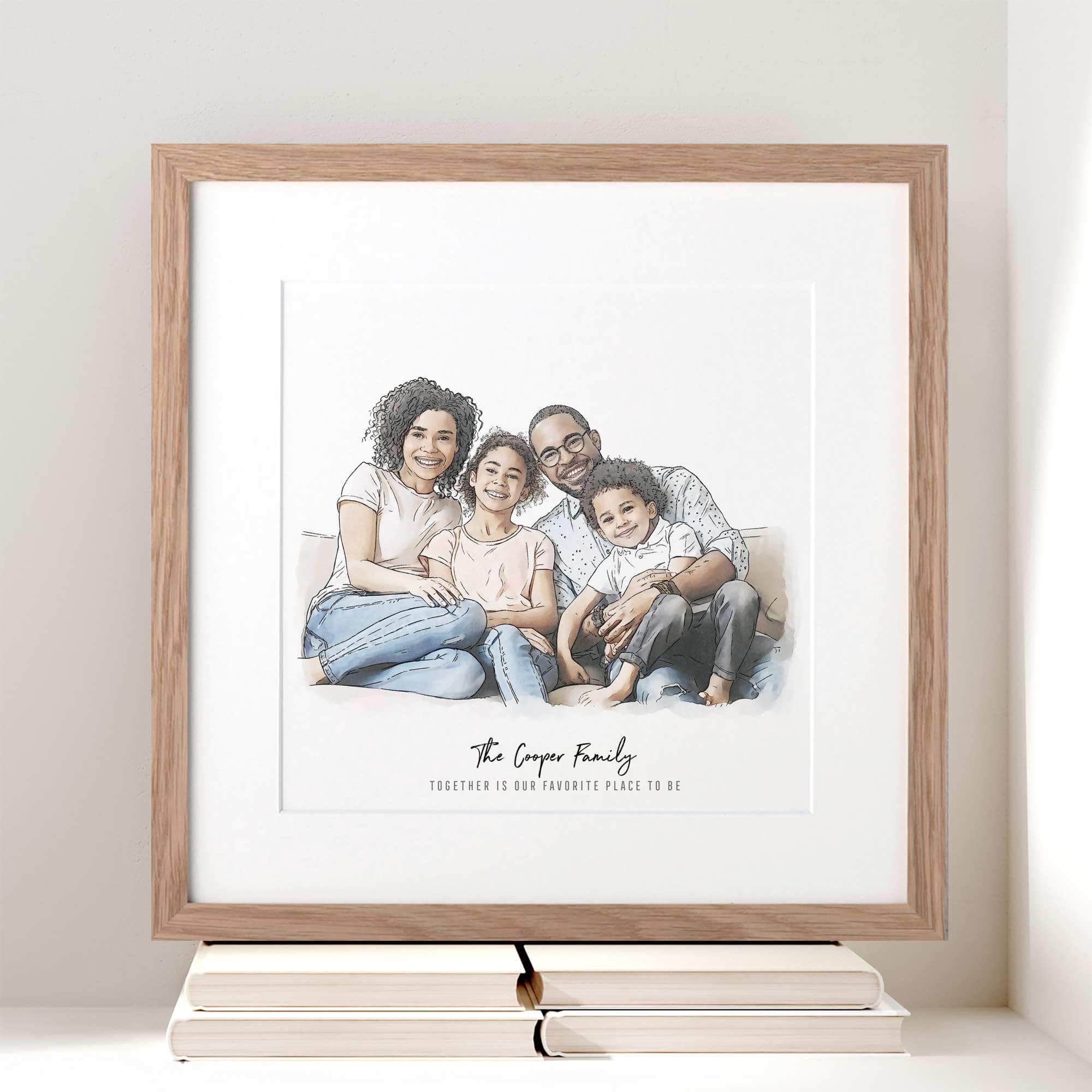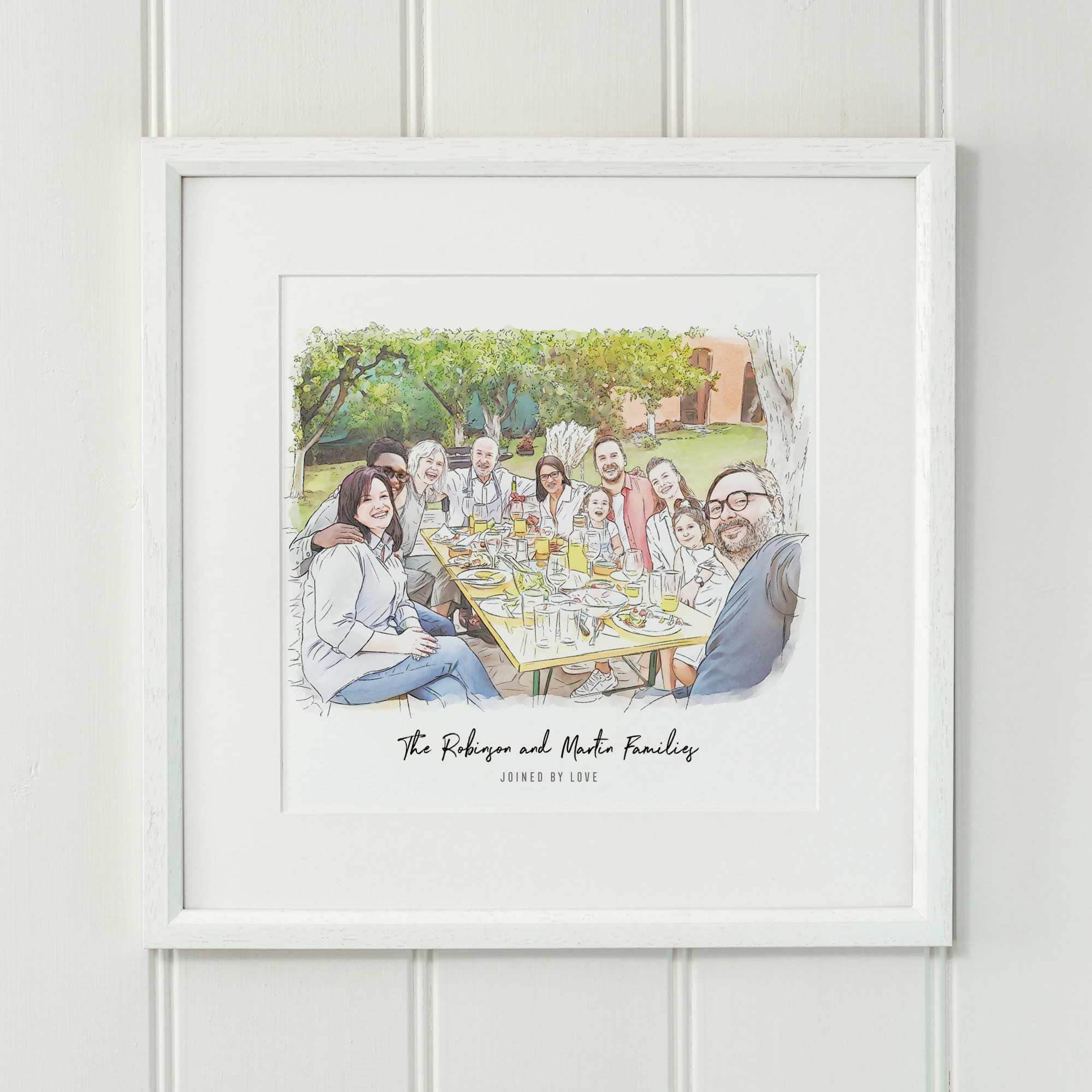 Turn your treasured family photo into a unique work of art with this hand-drawn line illustration of a person or family. Complete this special gift with a luxury hardwood frame and even send it directly to the giftee.