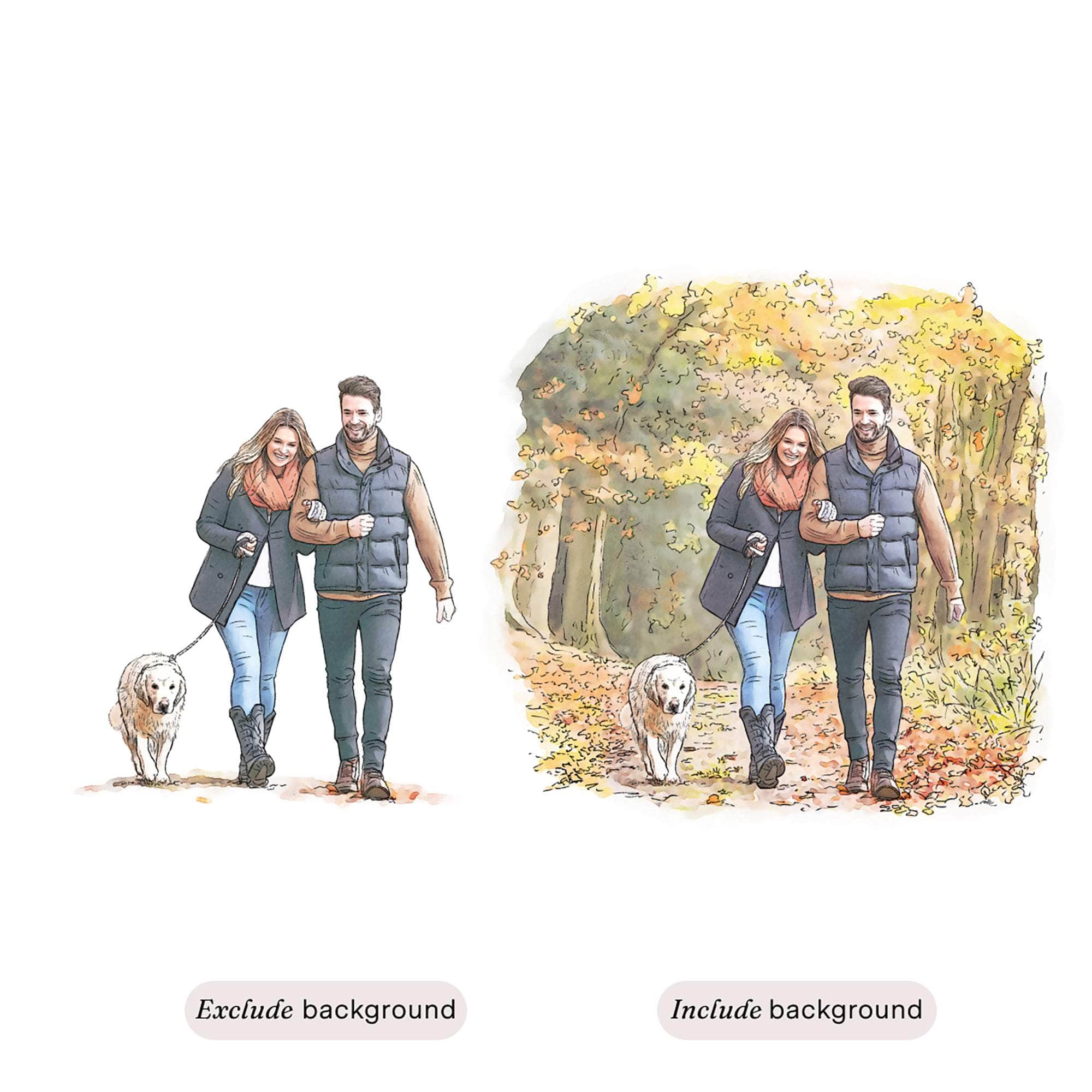 The portrait will be drawn from a photo provided by you. Backgrounds in the photograph can be included for an additional £10. Select how many people you would like drawn from the dropdown.