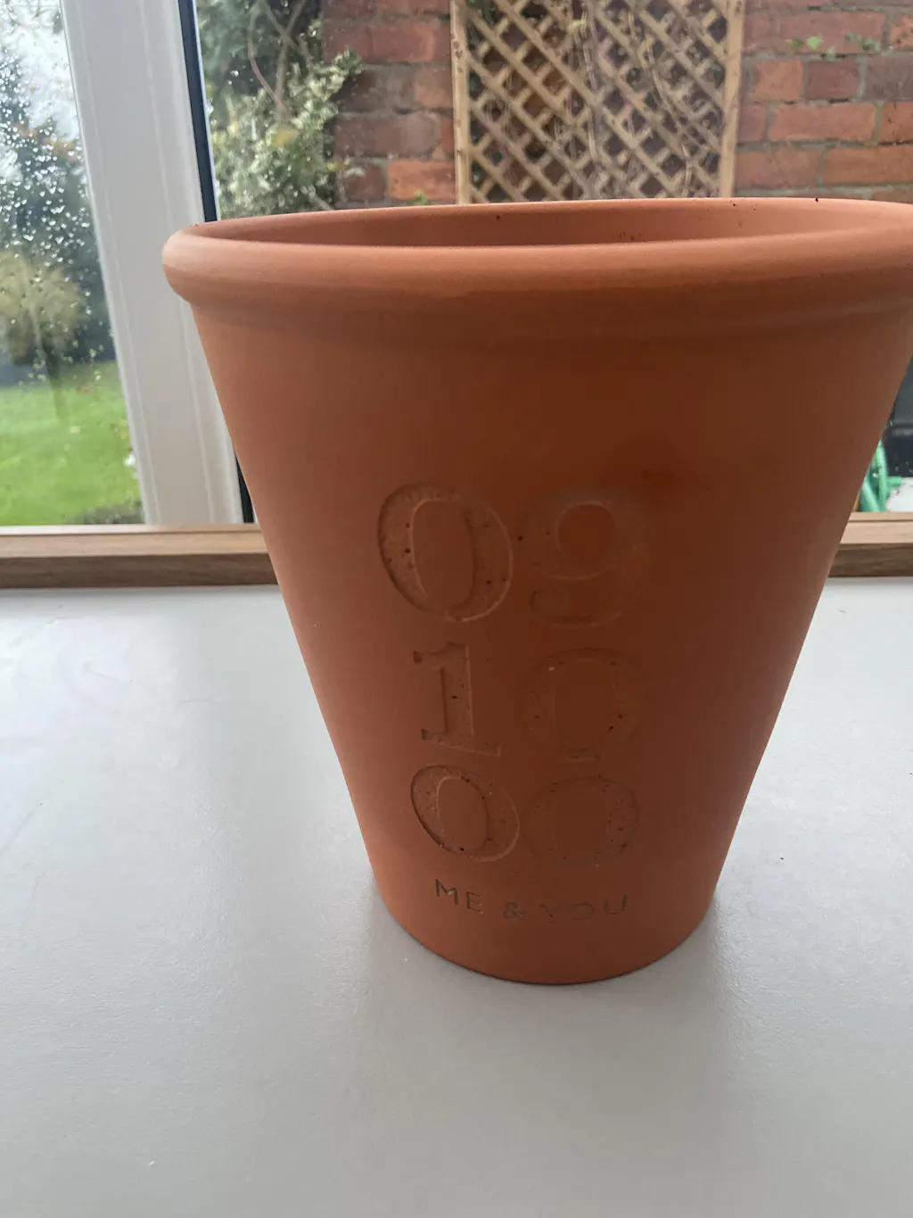 Celebrate a special day such as a Wedding, Anniversary or Birthday with this elegant terracotta flower pot engraved with your special date and names.