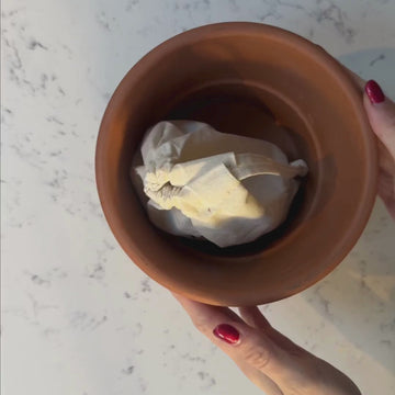 Please note, this is a natural organic product with subtle imperfections in the surface of the clay providing the pot with its rustic character - there will be small fissures and cracks which occur in the baking process but do not effect the integrity of the pot. The unglazed clay will have differences in colour and texture, it is predominantly terracotta red with flecks of white and pale grey.