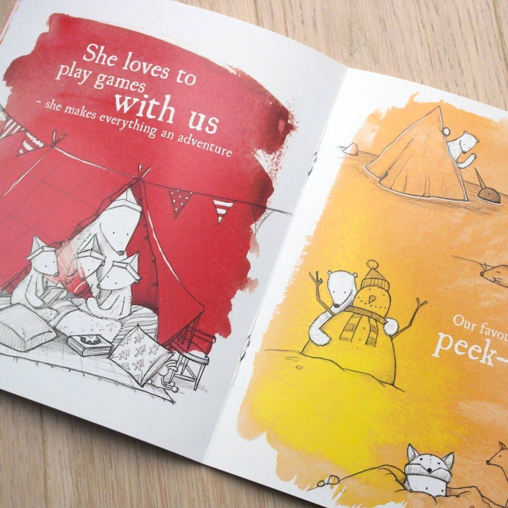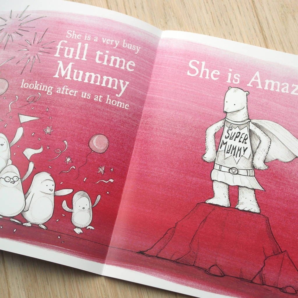 Personalised throughout with what your Mum loves - from what she does, favourite food, games, clothes, hobbies and film. The front cover is printed with the name of the child as the author and you can change the main name to whatever you want - Mummy, Mom, Mama etc.