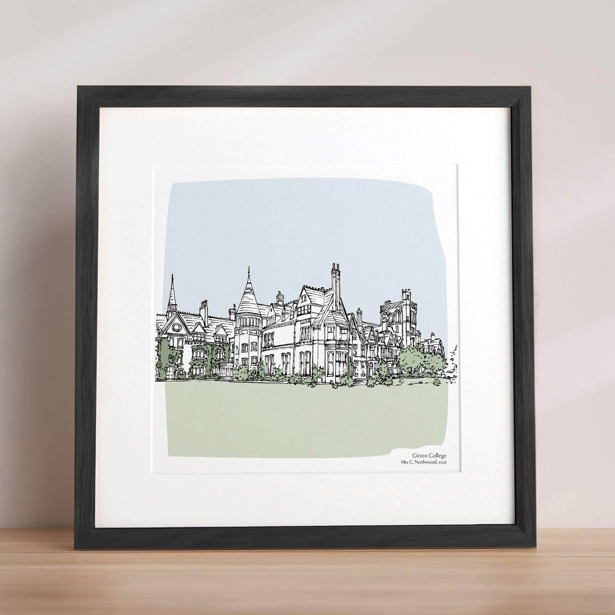 A perfect present for graduation or to thank that special teacher - a beautiful illustration based on a photo, hand-drawn by artists in North Devon. It could be a school, university or any building that has special significance. The drawing is clean and contemporary with the sky and surroundings coloured in muted tones.