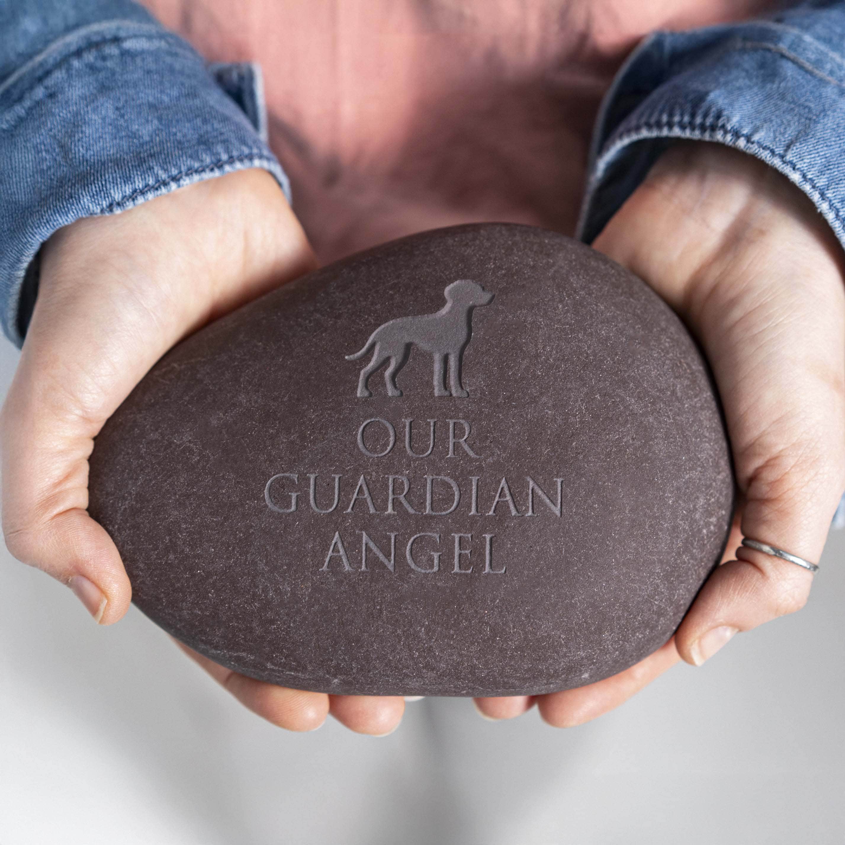 A perfect gift for a loved one who has recently lost a pet, to commemorate a best friend - your words or message engraved onto a natural stone pebble below a dog icon.