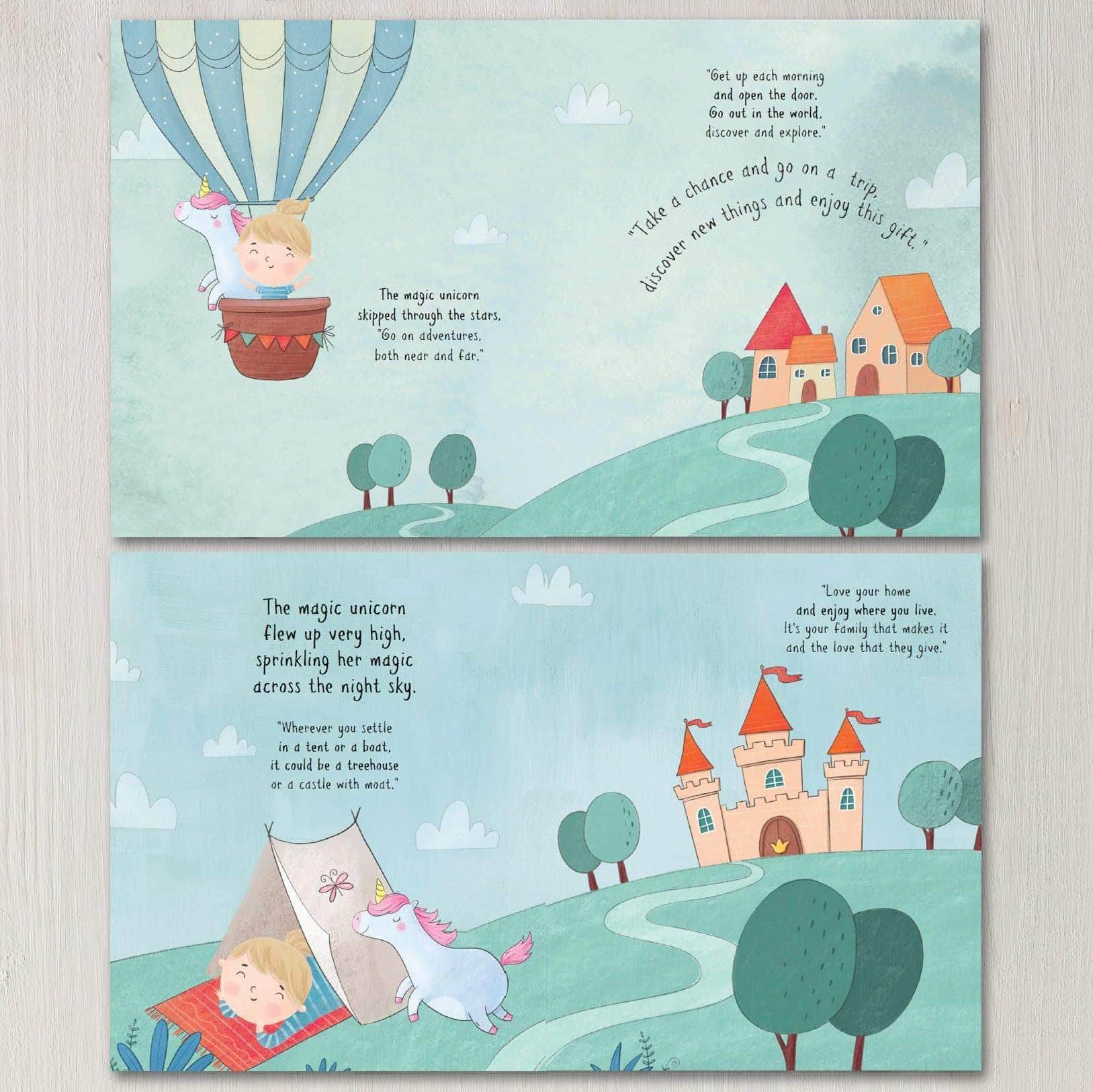 A perfect keepsake for grandchildren, birthdays or from godparents for christenings, the rhyming verse takes them on an adventure of a lifetime and teaches them some very important lessons along the way, from making friends, respecting the earth, being adventurous, loving their family, overcoming fears, learning new things, finding happiness and believing in themselves... with a little help from a sprinkling of magic.